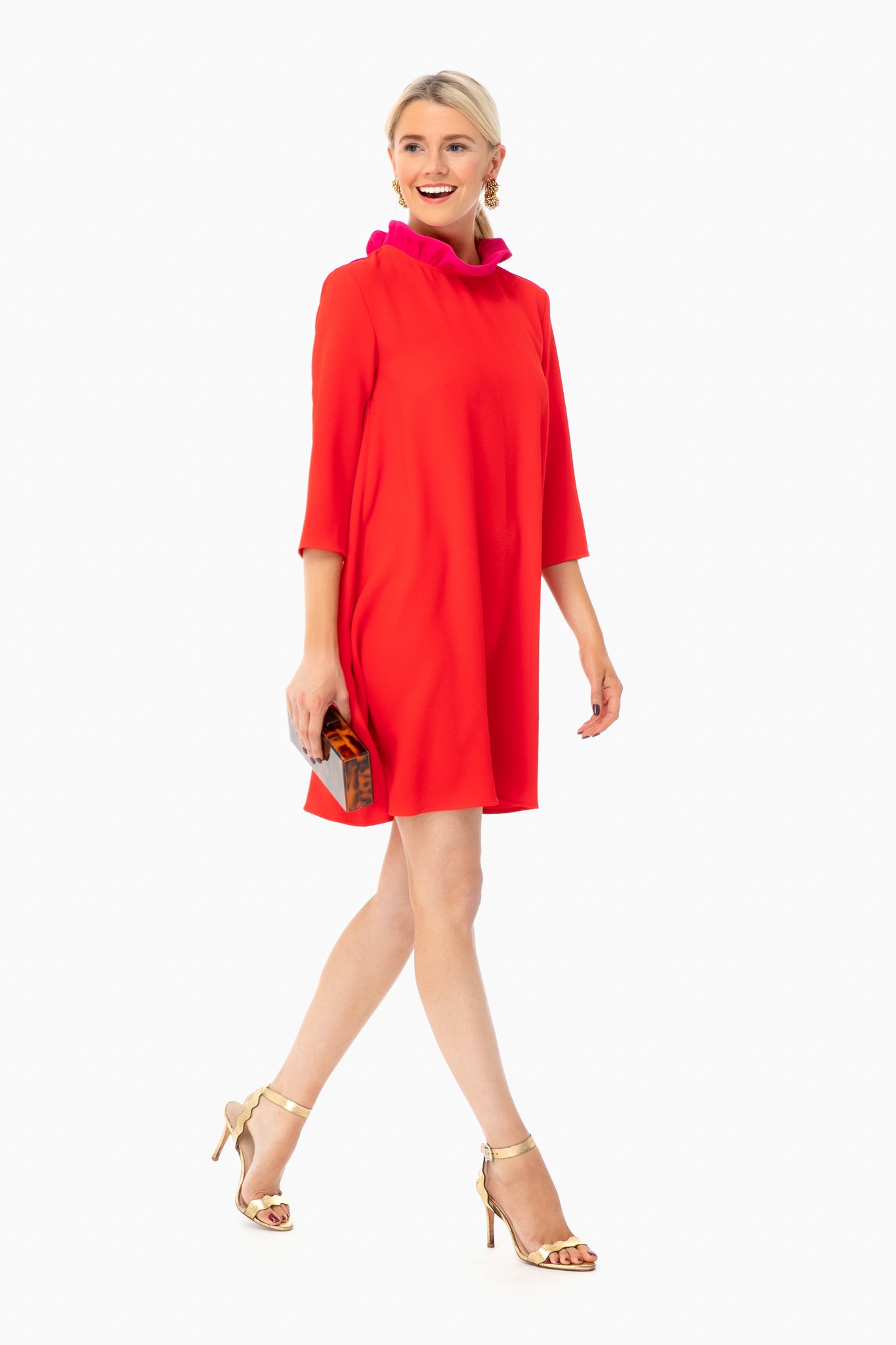 Our favorite dress is back and better than ever! With the same high neck ruffle and bow. the Daphne Dress features quarter length sleeves. From fall to winter. you will be wearing this to cocktail events and weddings.Back tie bowHigh neckPolyesterCare: Gentle machine wash