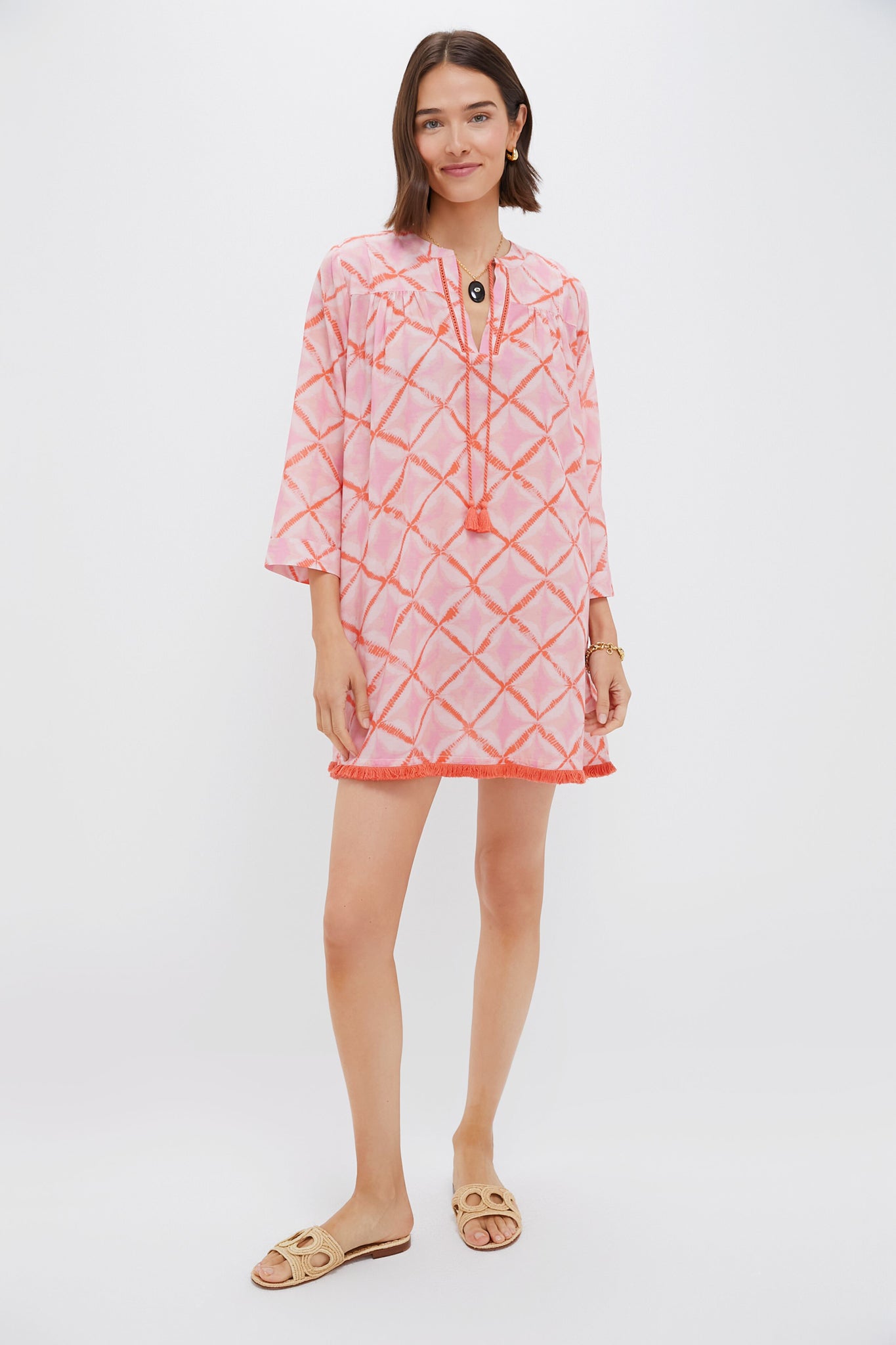 Boho-chic meets casual cool with the Coral Medallion Bondi Coverup. Adorned with a striking pink and coral pattern. this easy style features tassel neckties and three-quarter length sleeves that'll keep you protected from the sun but won't leave you overheated. This flirty mini has a breezy feel perfect for wearing everywhere from backyard pool parties to sailing the high seas — so just grab a pair of sandals and sunnies are you're all set from day to night!