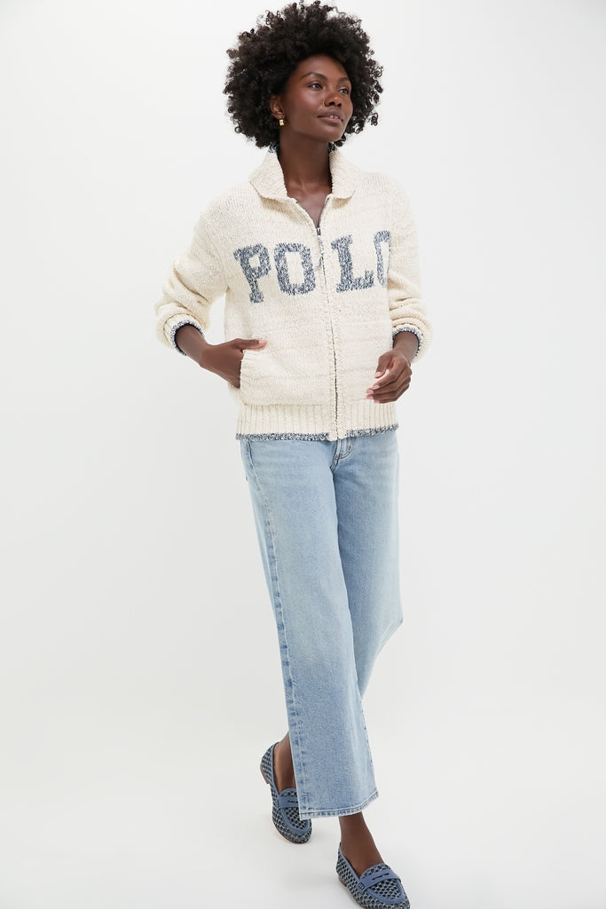 The Cream and Blue Long Sleeve Cardigan Sweater features marled yarn intarsia-knit. seed-stitching at the shawl collar. and front zipper. Perfect for travel days. casual weekends. and summer nights that turn chilly this versatile sweater will become your go-to! We paired it with jeans. loafers. and a tote.