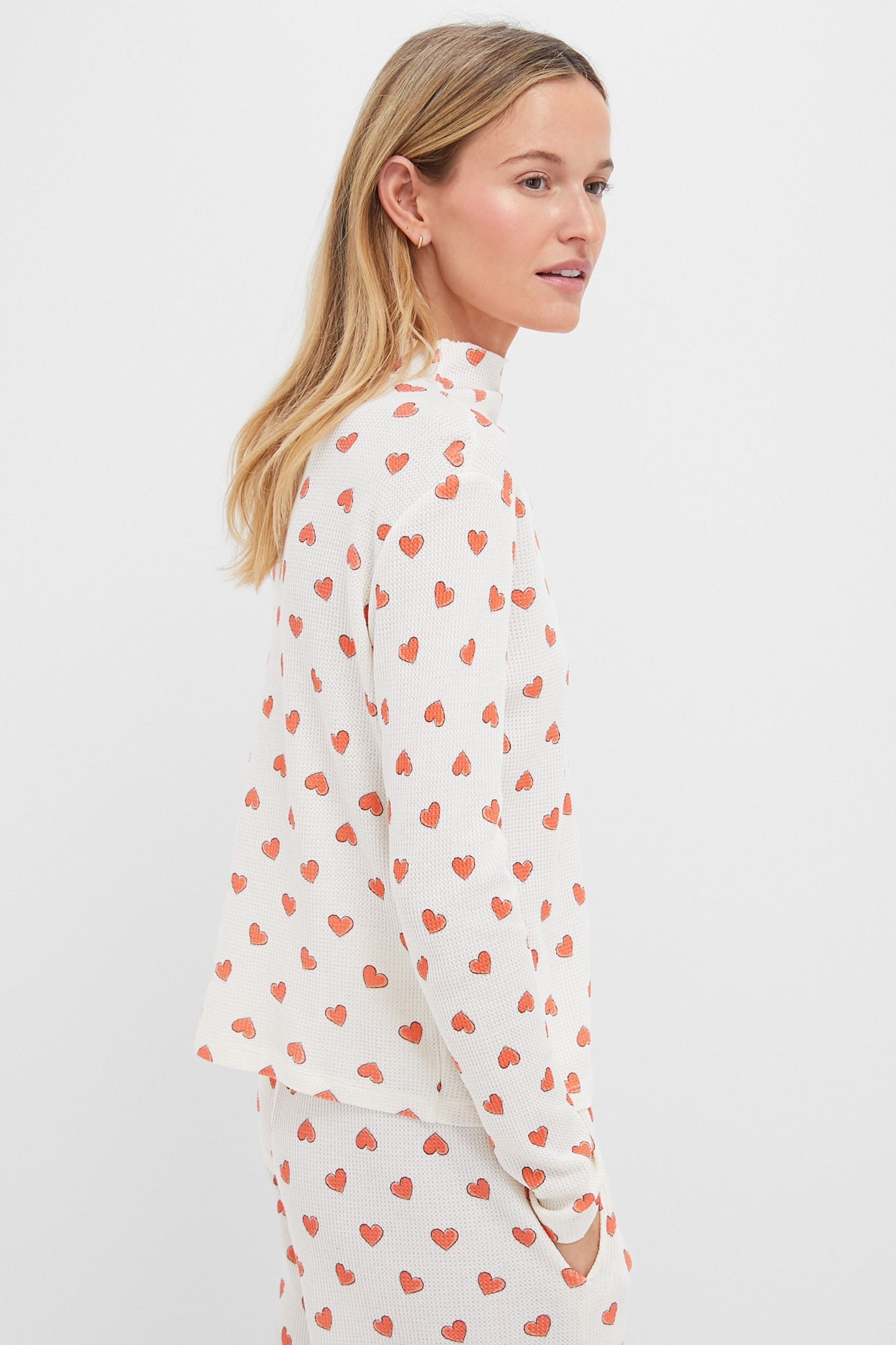 The Cream Multi Heart Arizona Top is perfect for getting cozy with your valentine! With an mockneck and waffle knit you will be chic. stylish. and comfortable! Pair with the coordinating Cream Multi Heart Jan Pants. a cozy sherpa mule. and gold jewelry!
