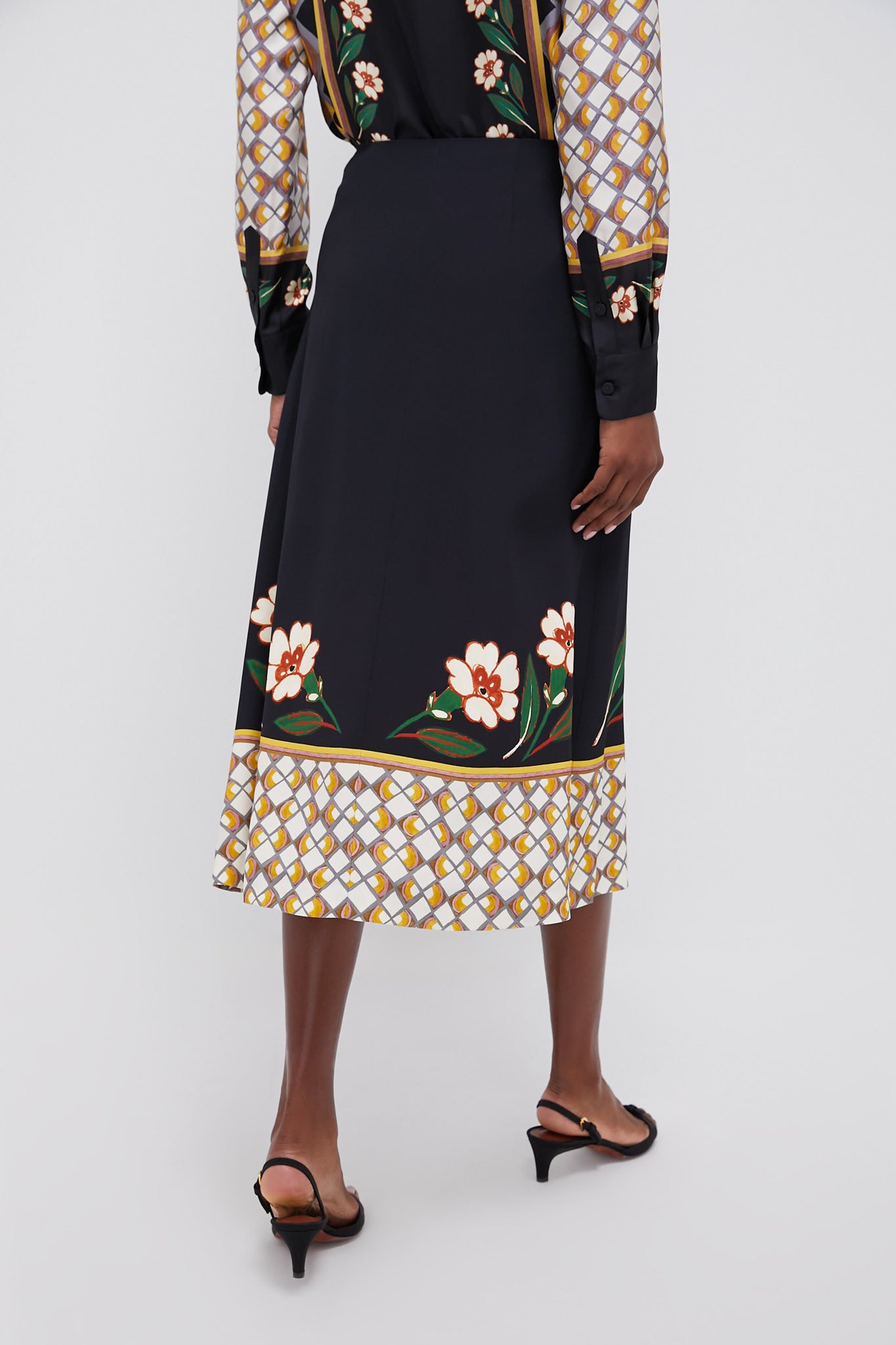 An eye-catching placed print midi