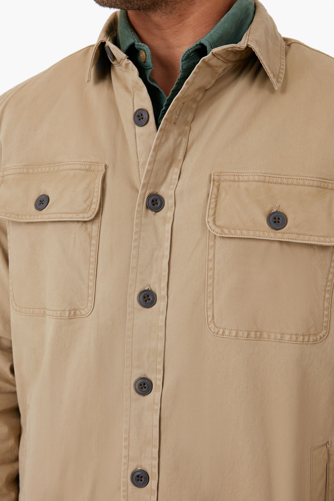 - Patch pockets with button closure at chest