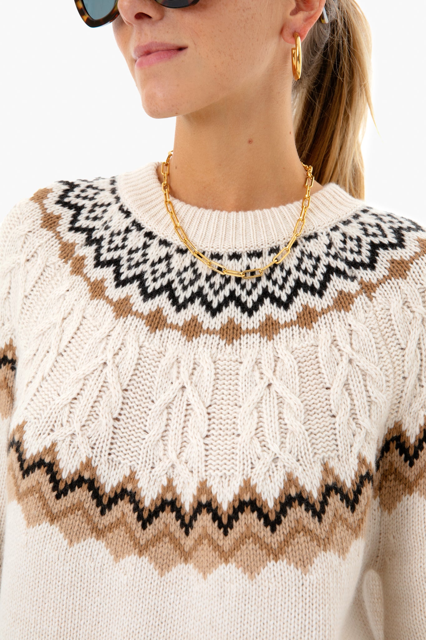 Named after the Winter Wren bird. this fair isle sweater is designed with all our favorite cozy knit details in mind. The longer tunic length allows you to style with denim. leggings and even layered over dresses for optimal outfit options. The warm tones and oversized sleeves have us dreaming of being fireside with those we love the most this season.