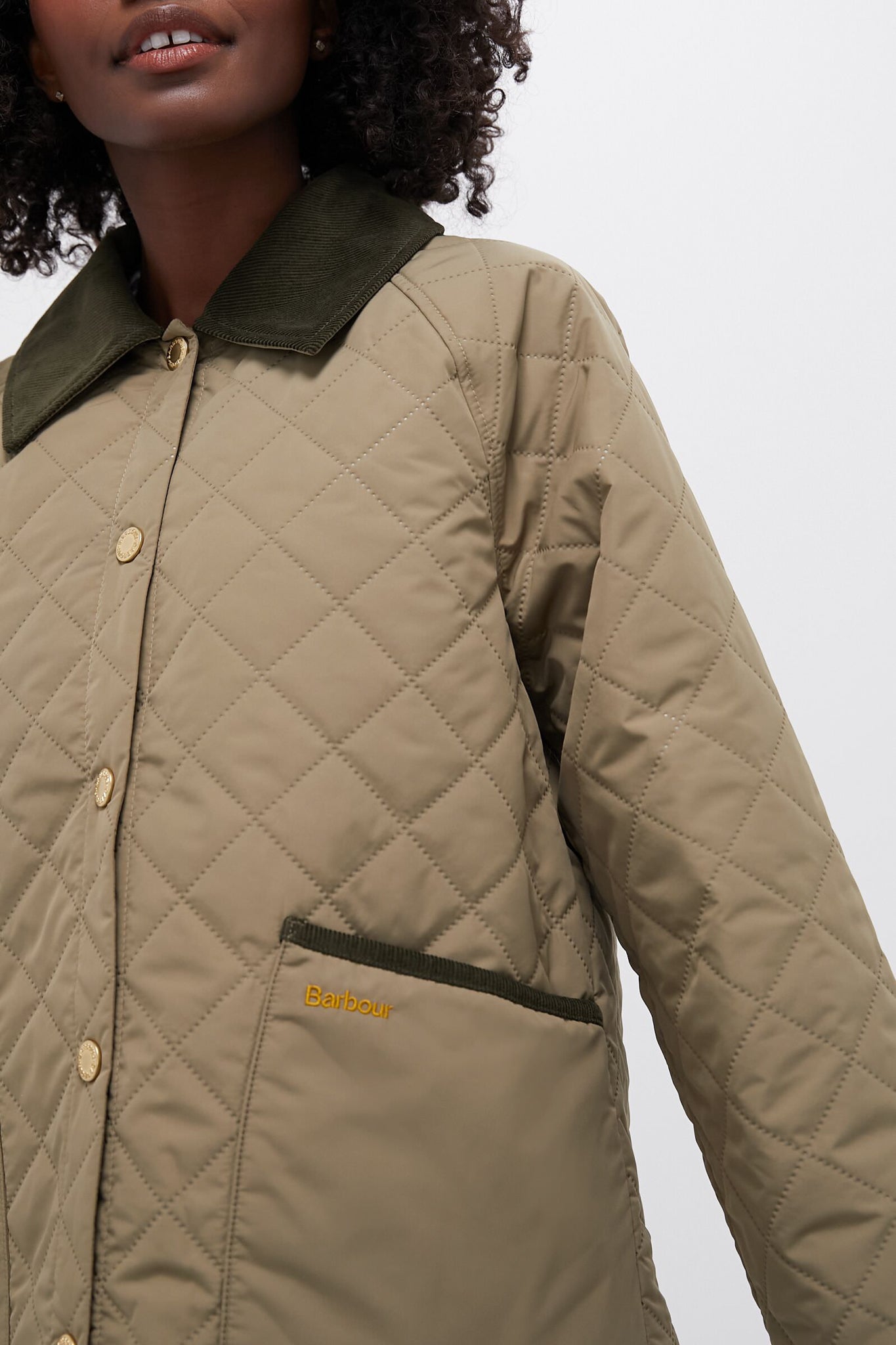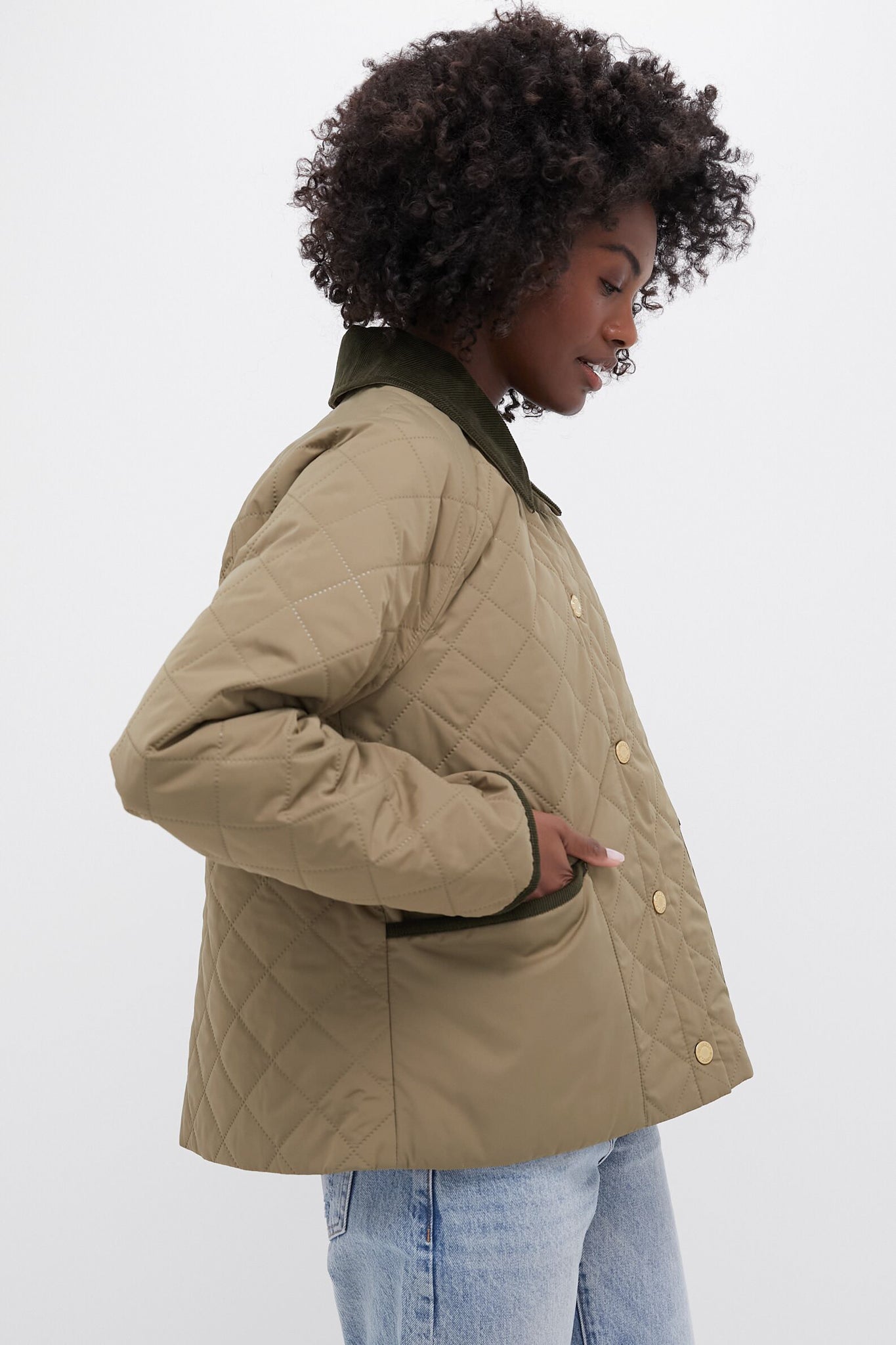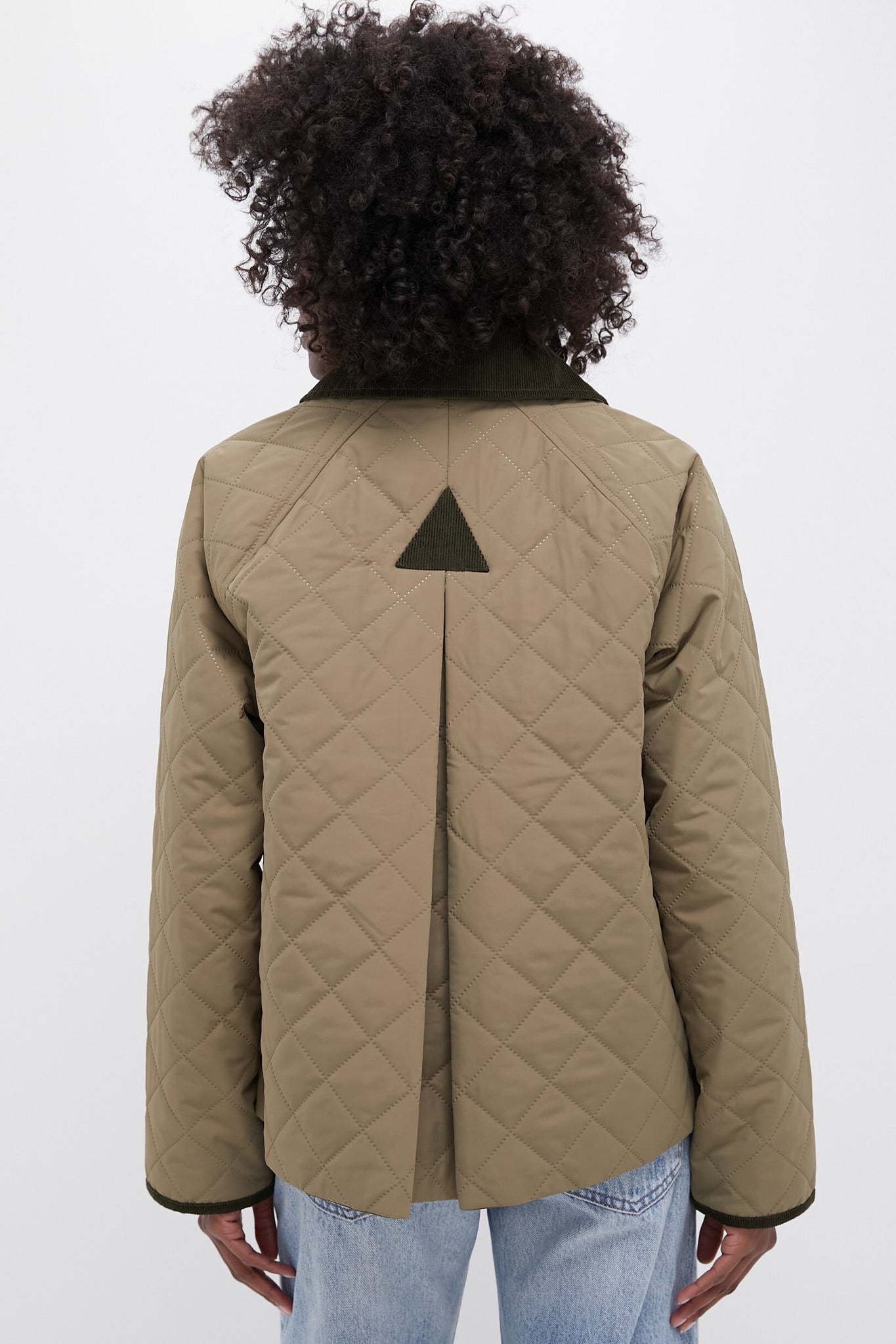 The Dusky Green Anise Jacket has a relaxed fit that gives it an chic. casual silhouette while the corduroy collar and patch pockets with trim add a classic look. With a signature diamond quilted texture. this coat is insulating without being heavy. and is ideal for traveling. Wearable year-round with tees. blouses. or chunky knits underneath. we know you'll reach for this over and over to complete your look with elegant style.