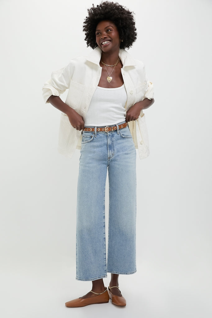The Neli jacket in ecru denim combines utilitarian style with modernity.