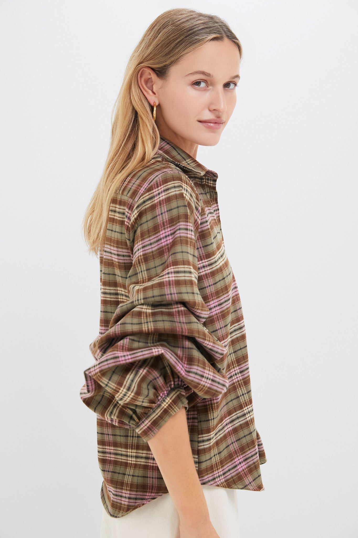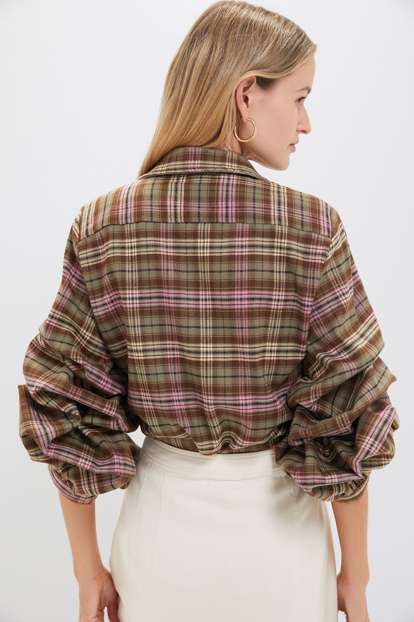 Boasting an Exclusive Green Plaid pattern. the Seville Shirt will soon become your everyday staple. Featuring a relaxed fit with gently ruched sleeves. making it a perfect choice for fall gatherings or cozy weekends. Pair it with denim or a skirt for a polished. casual look that transitions seamlessly from day to night.