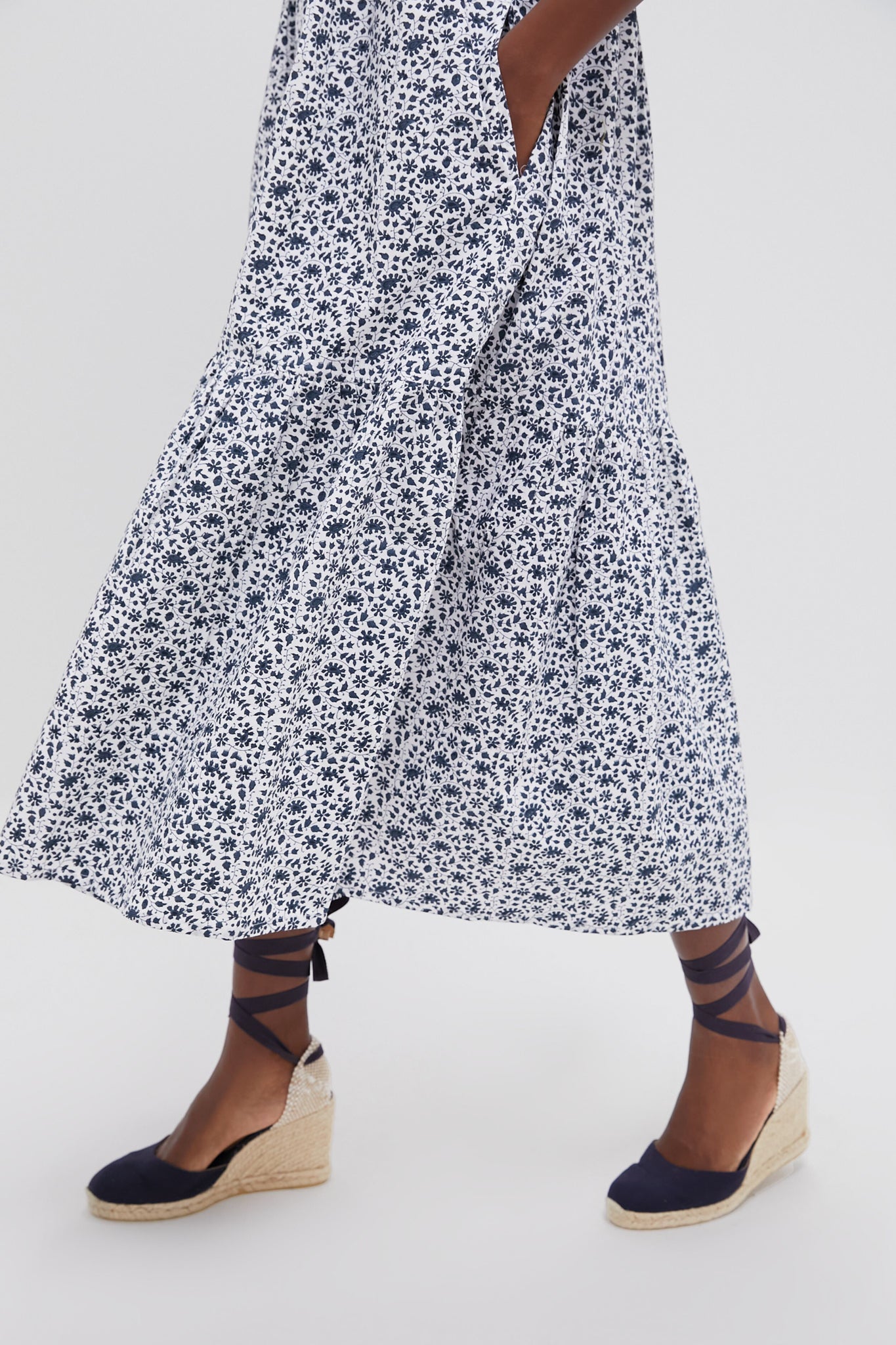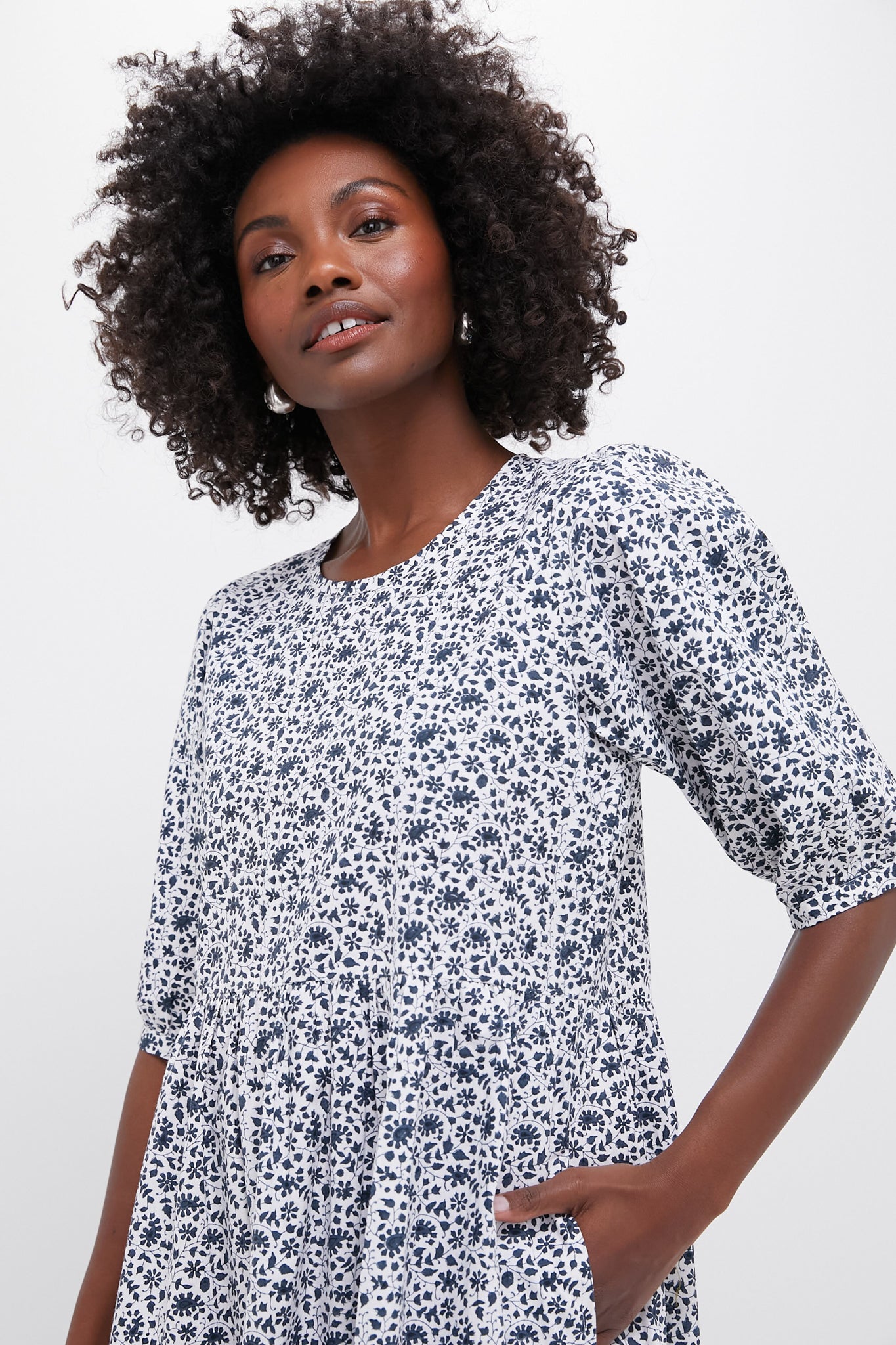 It doesn't get better than the Gaia Dress. The elegant floral hues are seasonless in design. and the thick cotton allows for durability for years to come. With an exaggerated puff sleeve for a bit of flair. we are pairing this look with white platform sandals and earrings for an effortless all-day outfit.