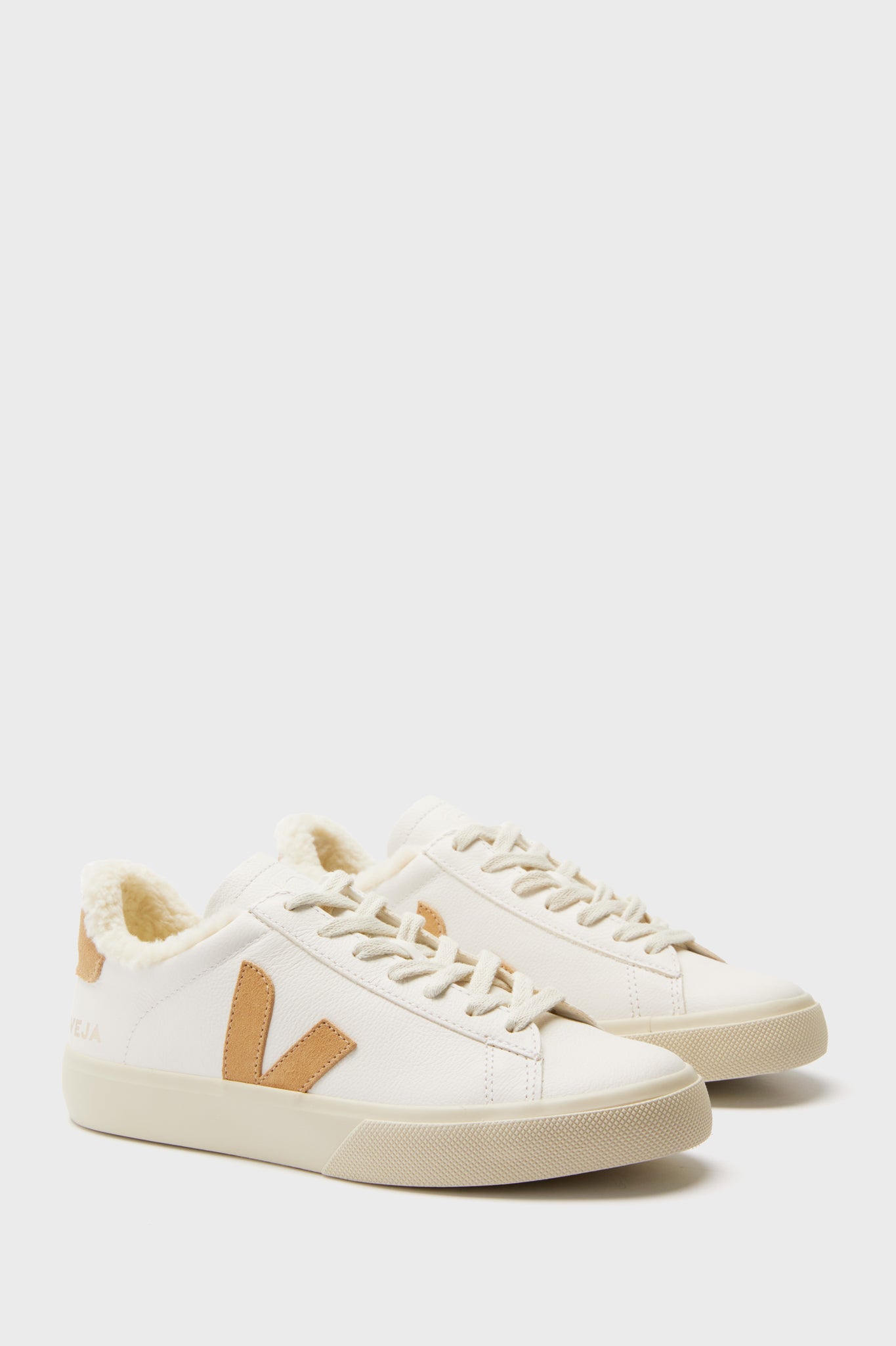 A white base with pops of neutrals. the Extra White Desert Winter Campo Sneakers are a forever favorite. A staple in any closet. these lace up shoes feature a cozy shearling interior for warmth and comfort wherever you go. The contrast coloring on the logo patch and heel create intrigue and make this white sneaker stand out from the rest. Pair with leggings to meet friends for lunch. and wear with denim to run weekend errands.