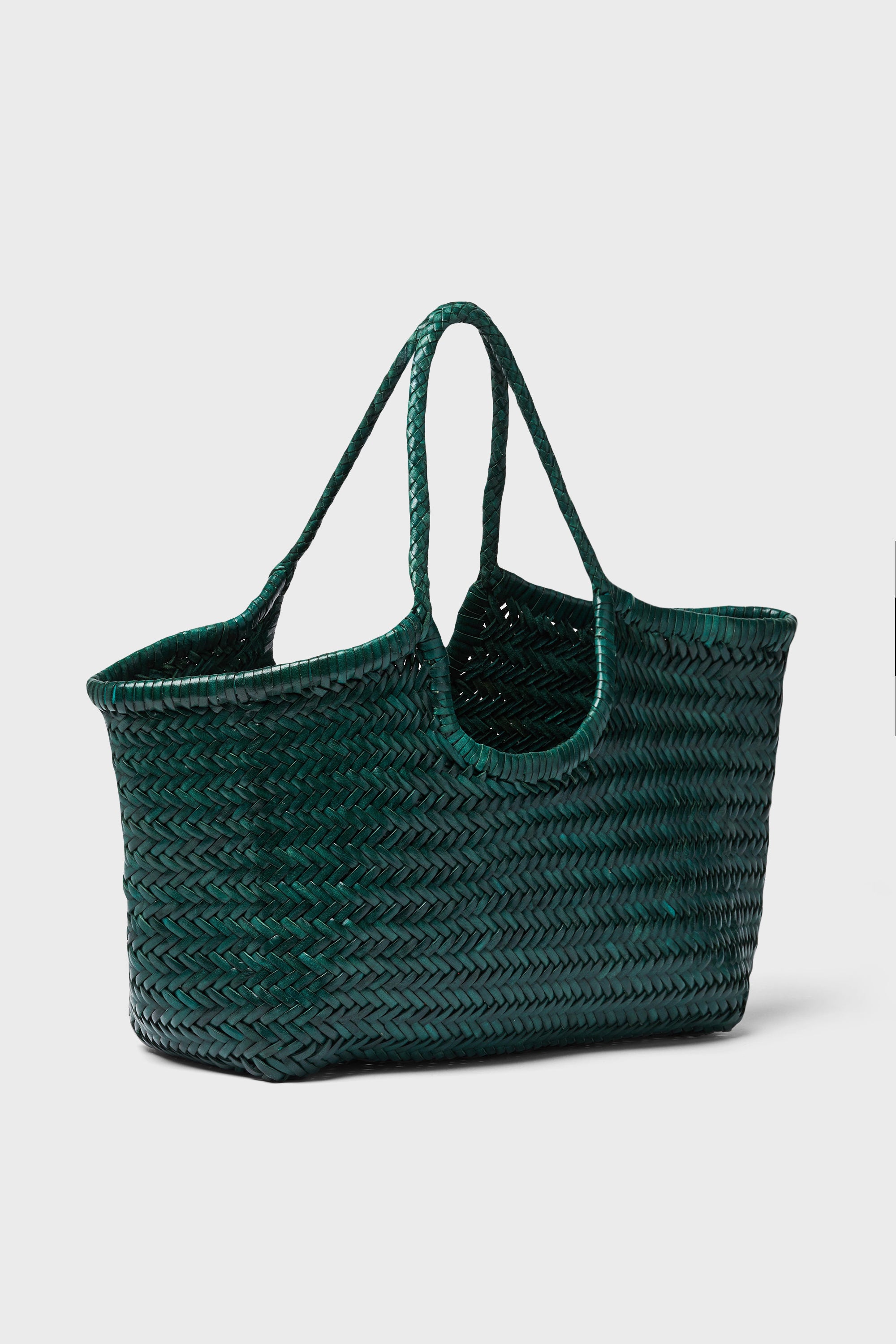Handwoven in a tight knit from soft buffalo leather. the Forest Big Nantucket Basket is a gorgeous addition to any bag collection. With braided handles that are both sturdy and comfortable to carry. this roomy style will be the perfect companion. This open-top tote will fit all your necessities. making your day a breeze no matter what you have planned.
