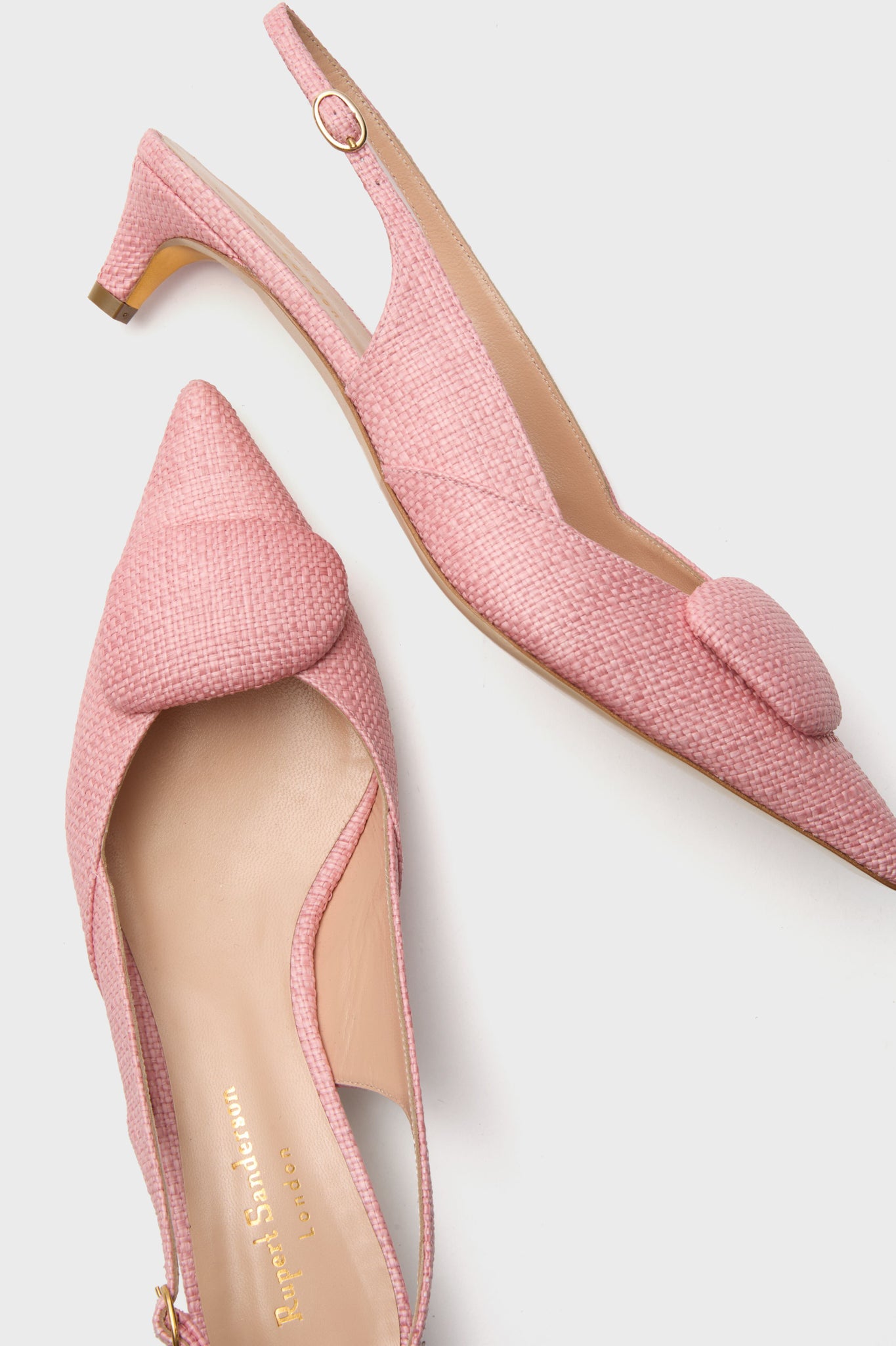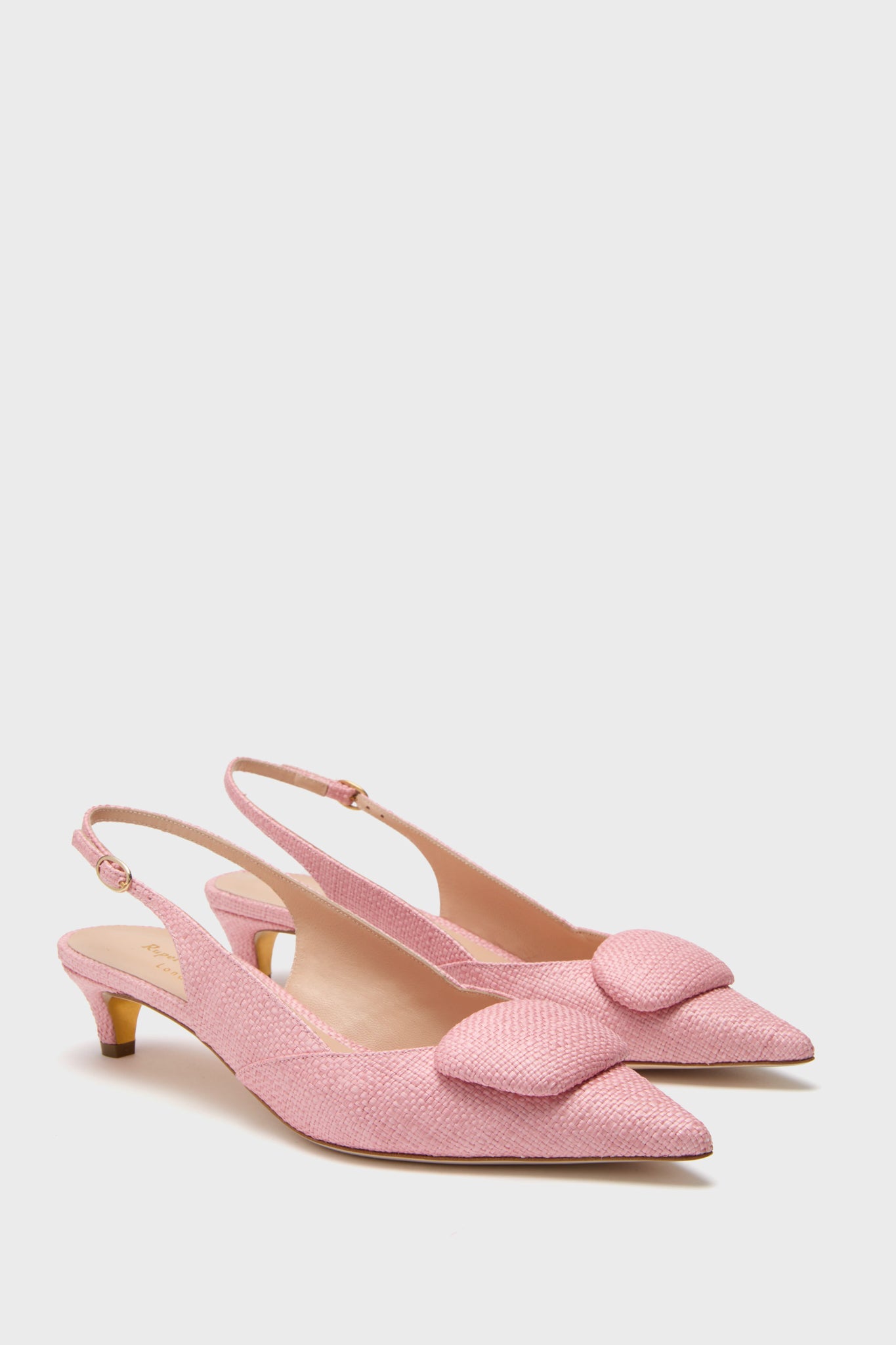 The Basket Weave Misty Heels are a true wardrobe winner- with their sleek pointed toe. pebble detail. slingback silhouette. and woven construction. they combine classic elements with modernity to create a flattering. feminine look. Pair with trousers and button downs for a pop of color. or with floral maxis for warm-weather events.