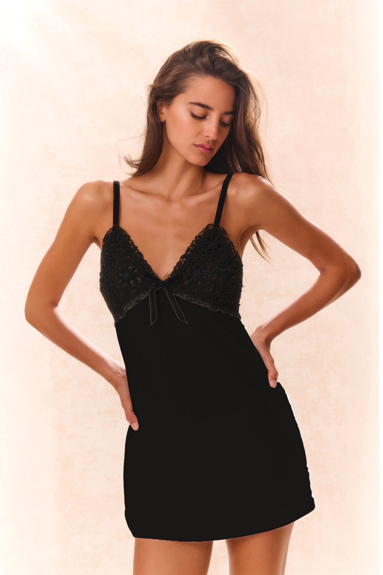 Glamorous and sophisticated. our Ganette Dress makes its debut. Crafted from a medium-weighted velvet fabric. the piece arrives corded with a luxe. Battenburg lace at the bodice with hand-beaded beads from our artisans in India at the cups. The back of the bodice features an organza for added structure. The chic party dress includes a bow tie detail at center front. velvet straps. flattering velvet skirts. and includes a zipper for functionality.