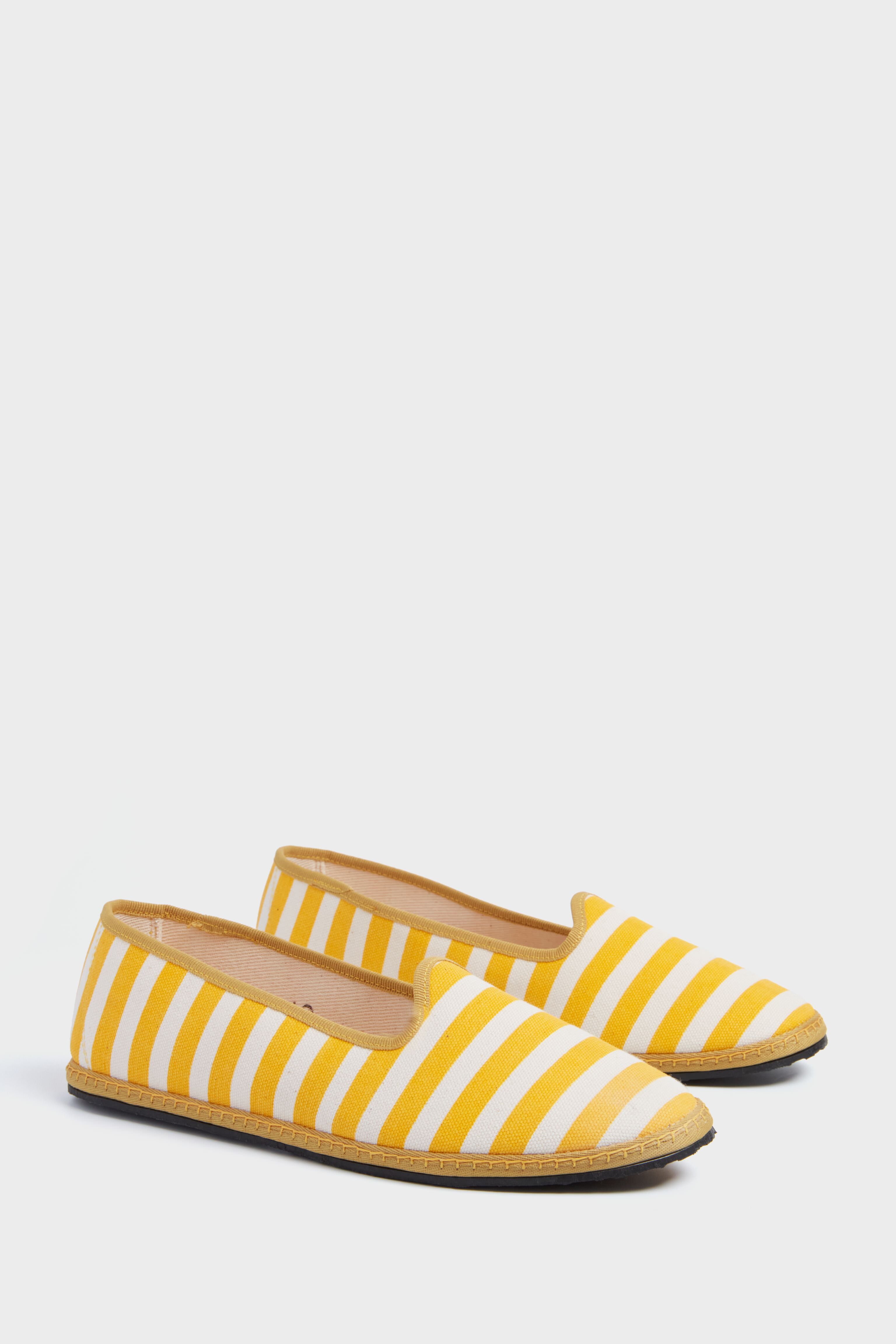 The Gi alla Gondola Flats are a vibrant. eye-catching accessory that will complement any warm-weather outfit. Handmade from a heavyweight cotton in a yellow and white stripe. and complemented with tan contrast trim. these are an easy yet elevated staple. Pair with denim and a breezy button down or a chic maxi!