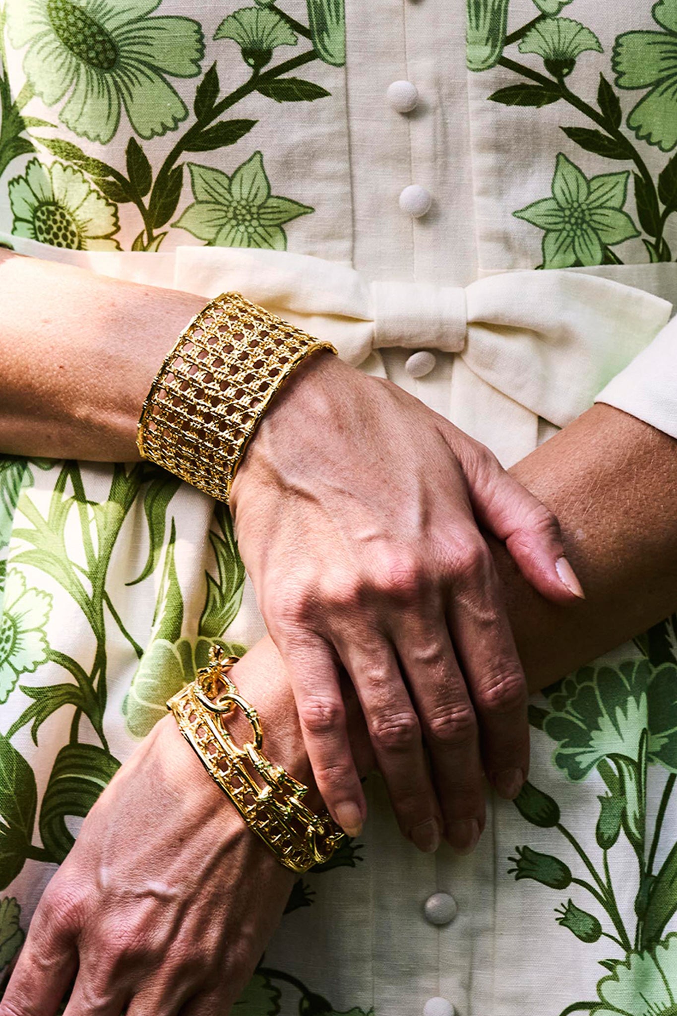 Just as traditional bamboo cane furniture has added warmth and timeless style to interiors for centuries. this golden statement cuff is the epitome of chic. Equally unique. classic and exquisitely detailed. this bracelet is the perfect embellishment to elevate any ensemble. whether you're having tea in the garden or cocktails on the veranda.
