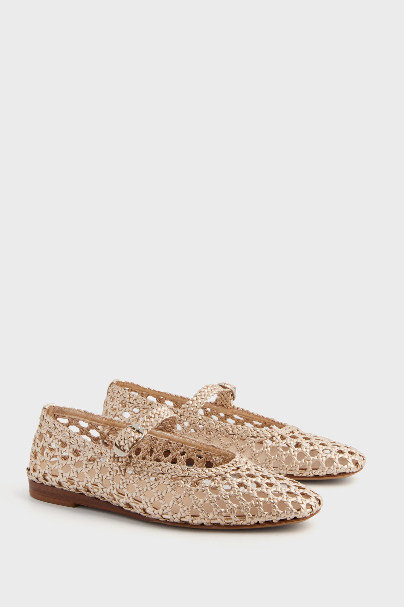 Up your shoe game with the Gold Woven Mary Jane Flats. The easy ballet silhouette is elevated with a hand-woven body in metallic gold leather. An easy everyday style that will catch eyes. we are pairing these with minis. maxis. and everything in between.