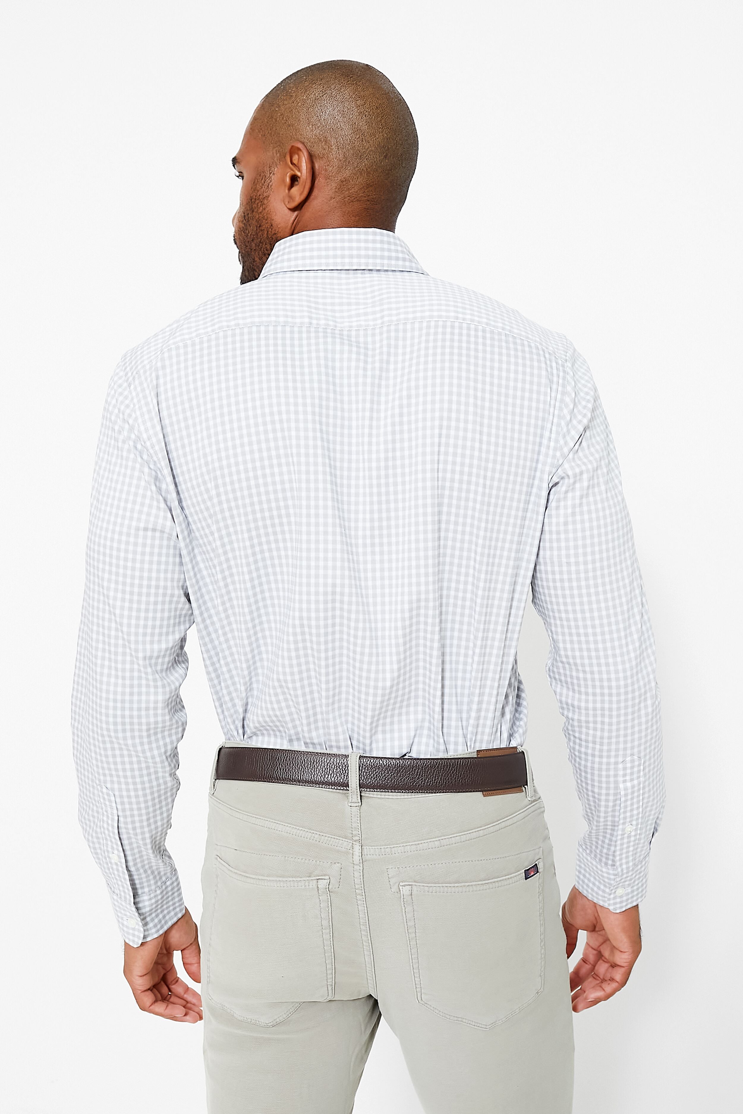 The Gray Sky Gingham Movement Shirt looks put-together and allows you to move freely. Incredibly soft and airy. the magic of this button-up comes from Faherty's custom-developed Supima cotton blend. Its extra-long staple fiber is renowned for producing the smoothest and finest yarn with natural performance qualities. add the perfect amount of stretch and you have the most comfortable shirt for all day wear. Wrinkle-resistant. with clean. refined tailoring. it's the top you can always count on no matter where you're going or who you're meeting.