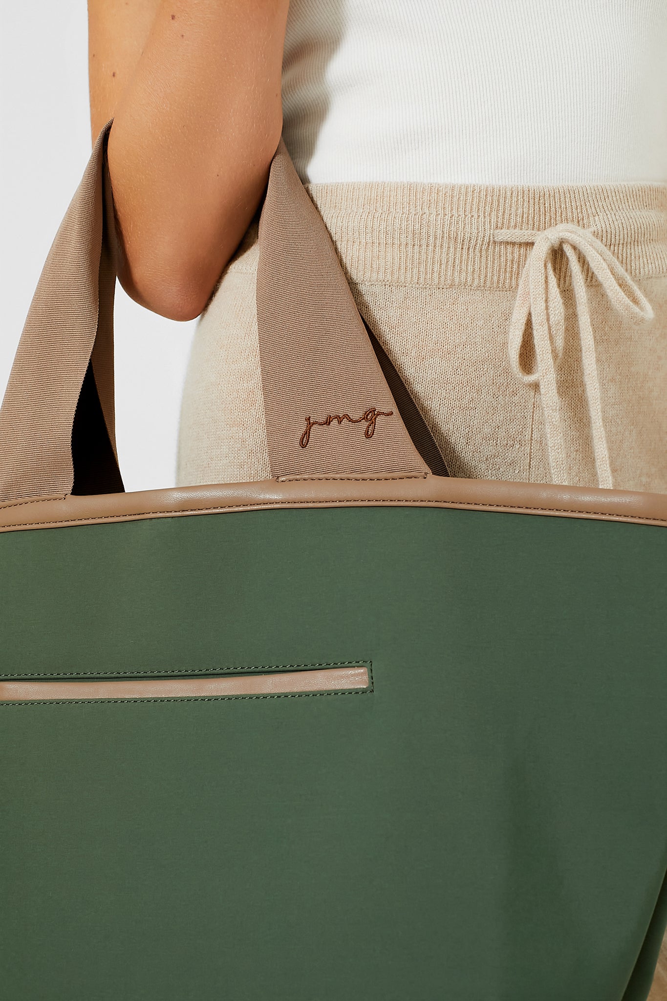 That perfect not-too-big. not-too-small size is achieved with the Green Nylon Tote Bag. Great for work. play. errands. and everything in between. this medium-sized bag features top handles for comfortable carrying. an open top with a clip closure for easy access. and plenty of pockets to keep you organized while on the go. Throw all your essentials for the day into this chic carryall and rest assured you're seamlessly blending fashion and function.