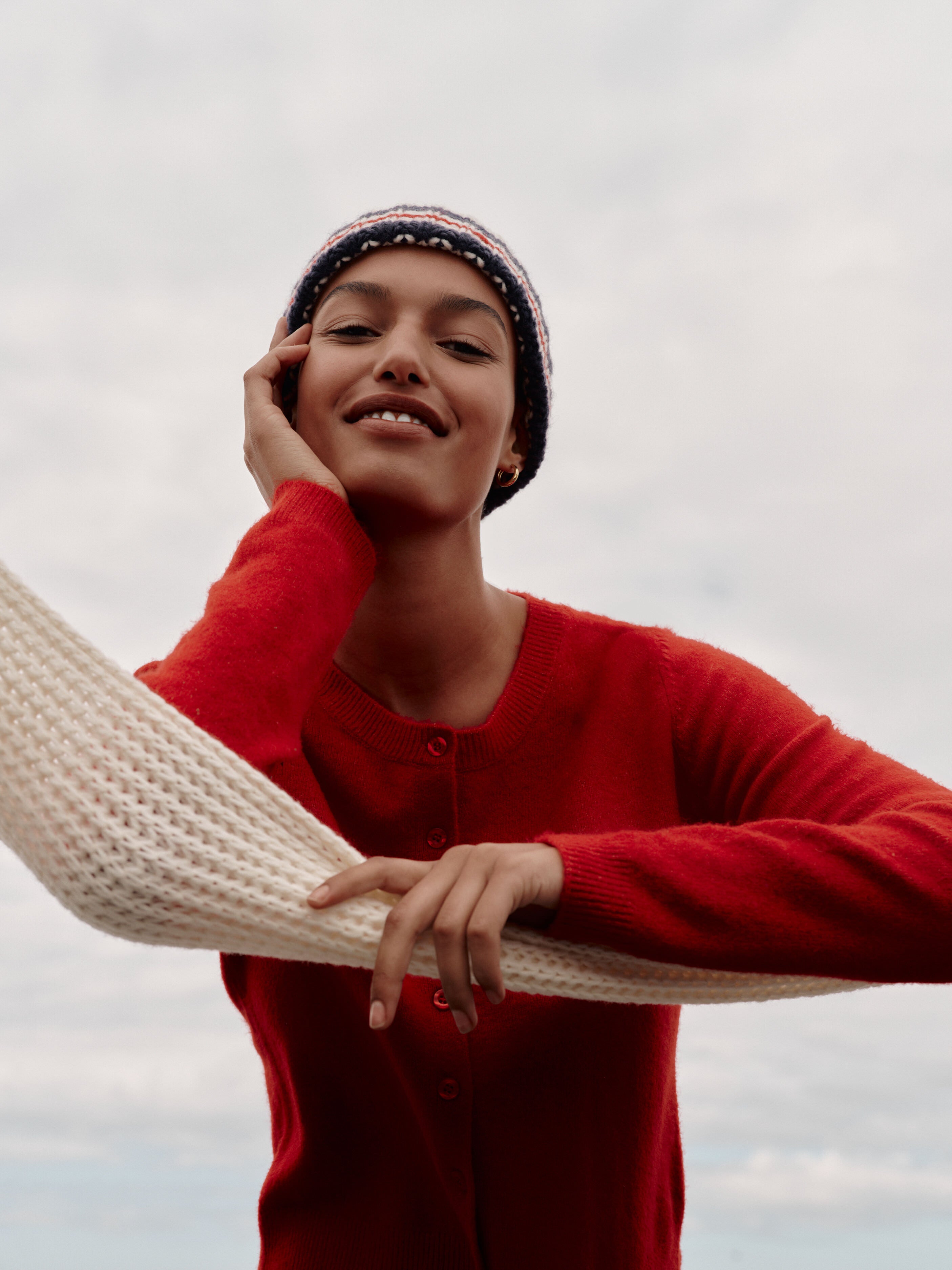 This easy fit cardigan. crafted from soft sweater yarns. is your go-to for versatile layering. With a crew neck and button front. it's a timeless piece that pairs well with everything in your wardrobe. We are styling it with denim and ballet flats for casual days around town. or with a glitzy skirt and heels for holiday events!