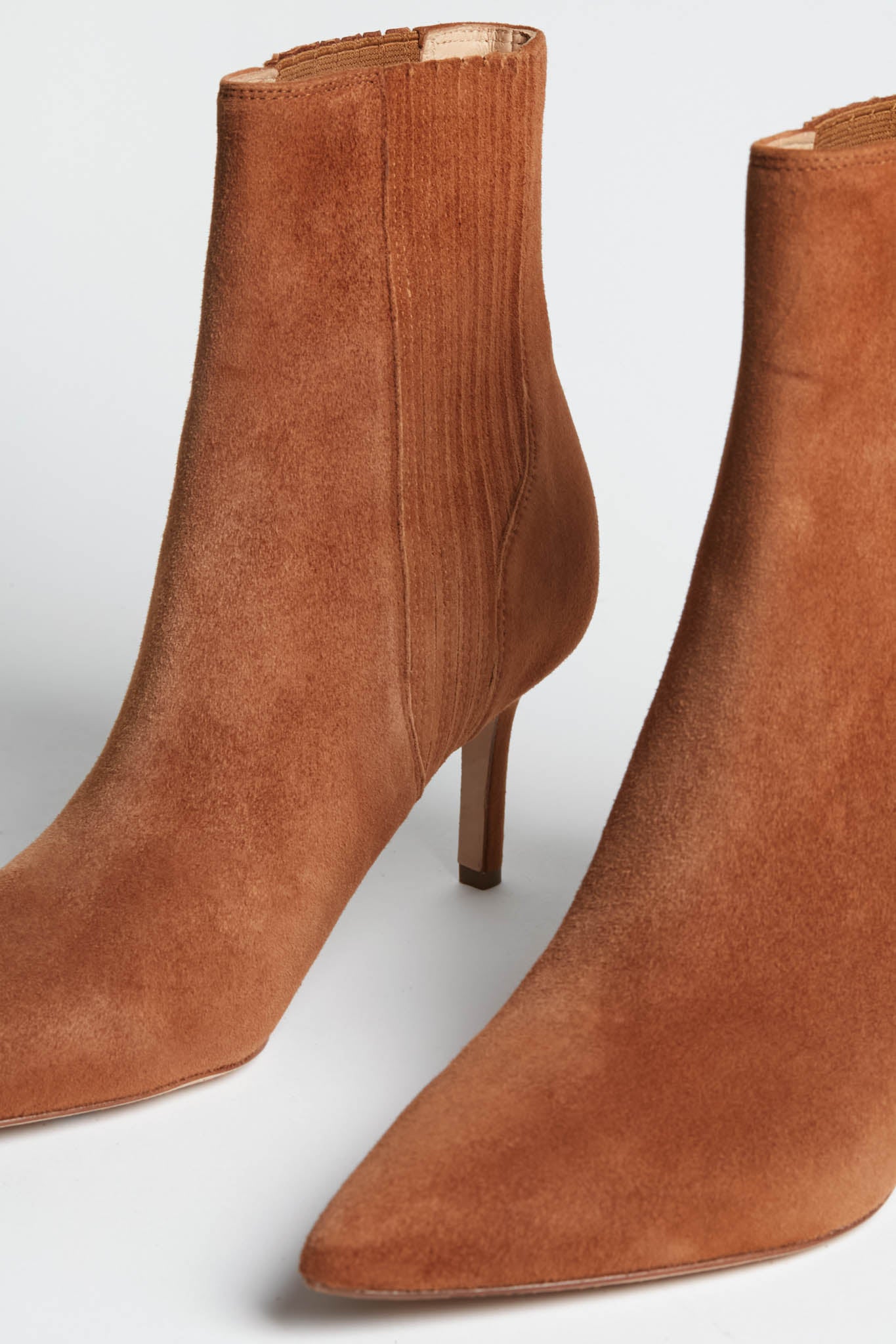 The dreamy Hazelwood Lisa Short Boots are beautifully crafted in a smooth suede. Featuring ribbed detailing to allow for pull-on ease. a sleek stiletto heel. and an elegant pointed toe silhouette. these beauties are everything we need and more this season! Style with your favorite dresses. skirts. trousers. denim. and more — these booties are endlessly versatile.