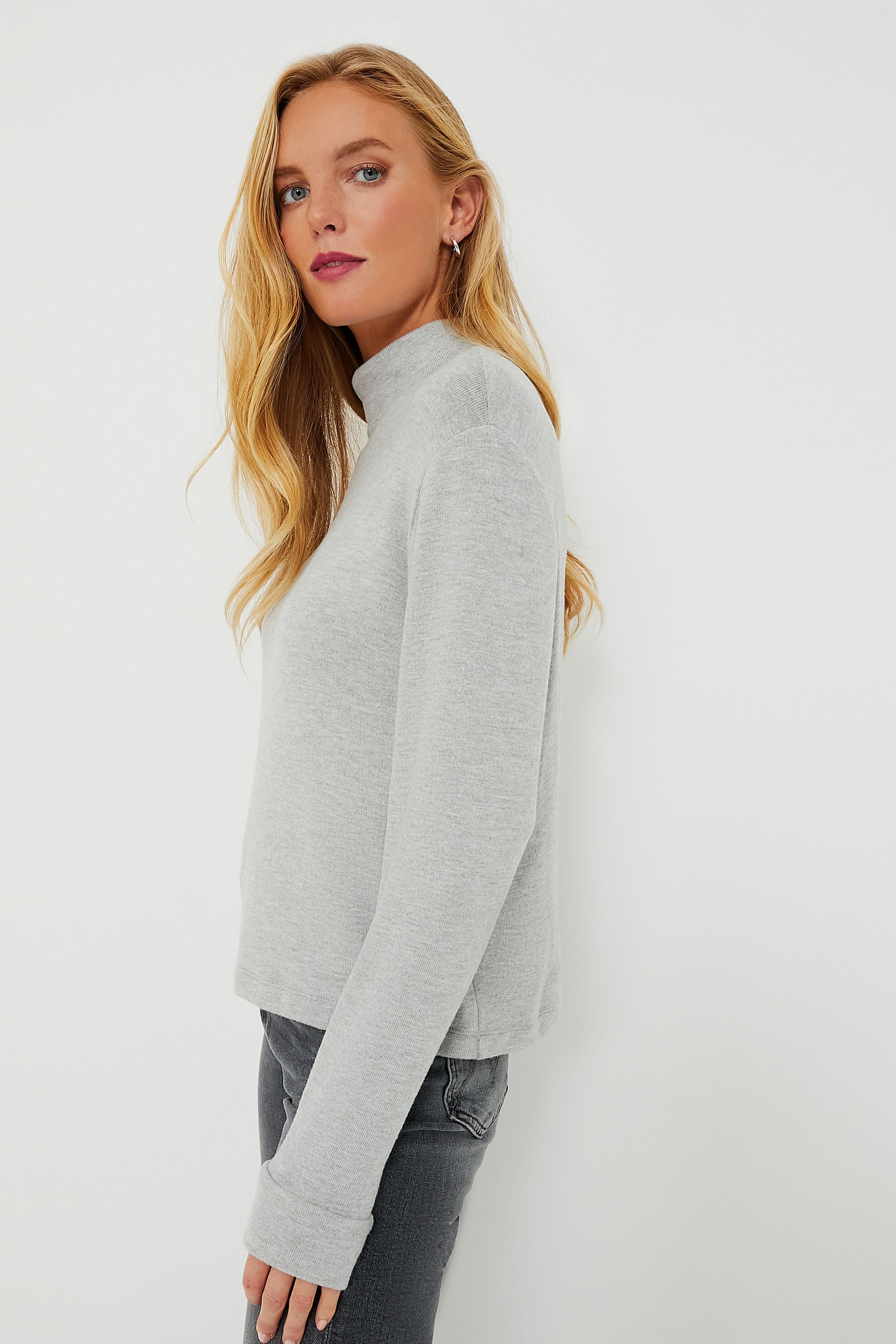 The Heather Grey Sweater Turtleneck is a classic layering piece that you'll be wearing all season long. year after year. In a super soft sweater fabric. this relaxed silhouette can be worn under a cardigan or tucked into your favorite denim. Style this versatile number under a blazer for a chic office outfit to give you a confidence boost before your next meeting or with mini skirts for effortless seasonal transitions.