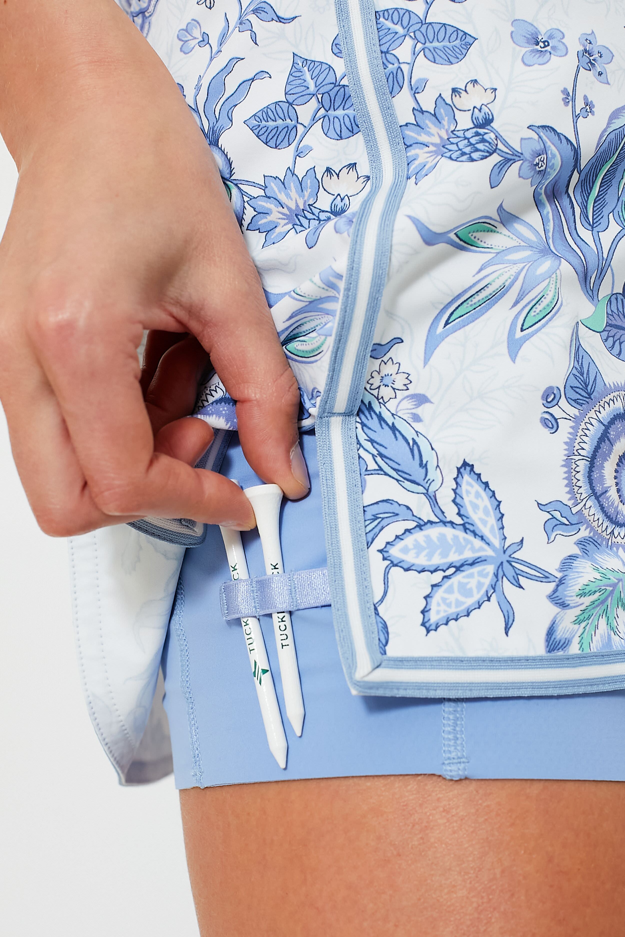 Make an elegant statement on the greens in the Heirloom Floral 16 Inch Karrie Golf Skirt. This fashionable and functional mini features compression undershorts and a floral blue and white print. Pair with a cardigan for coffee or a performance tank for a day on the course!