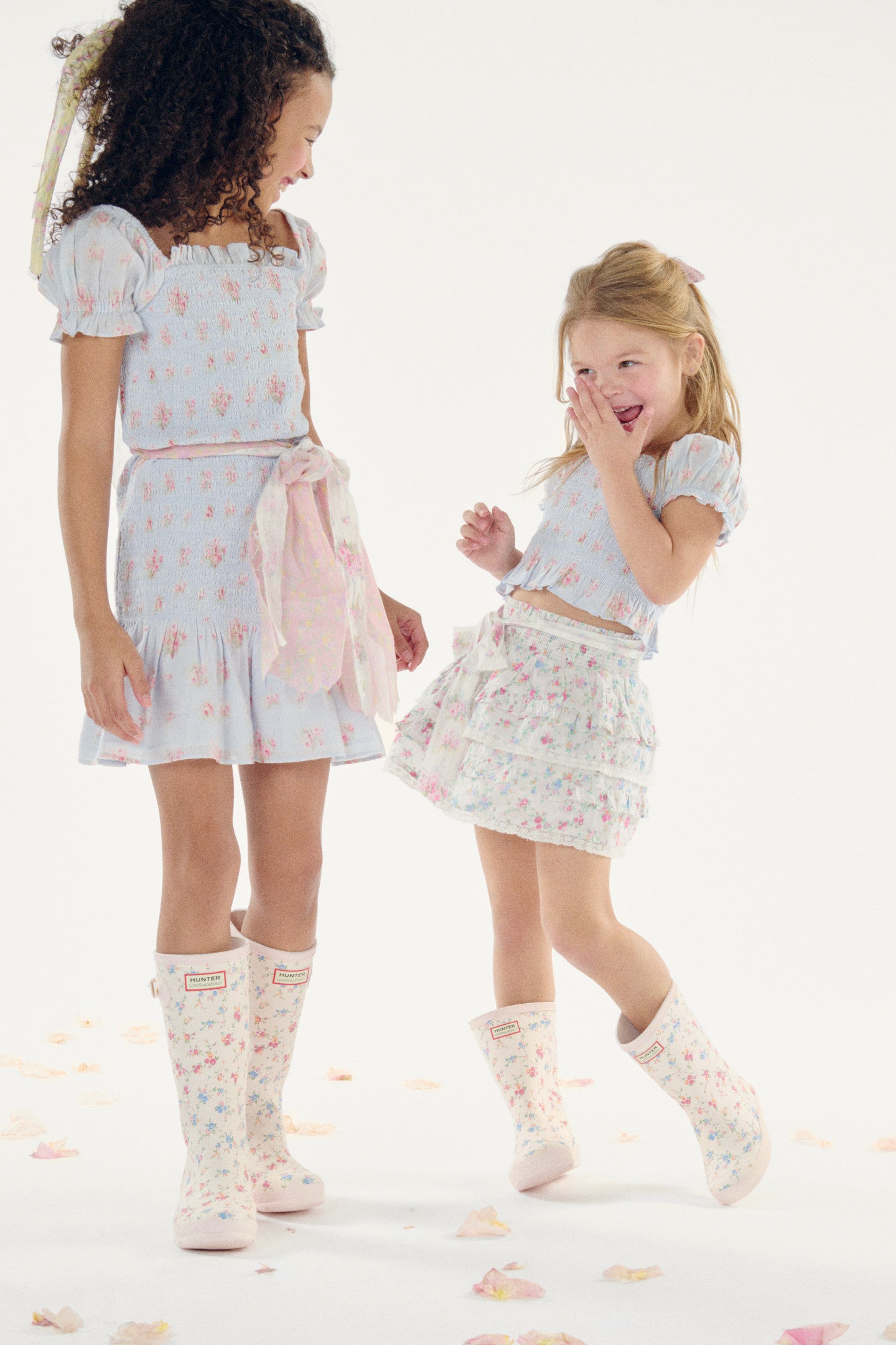 Hunter's iconic Wellington Boots get the Go Chicly treatment with our signature prints with this limited-edition collaboration. The Original Kids Wellington is a dream for junior explorers and a mini version of the iconic Original Tall Boot. This waterproof kids boot is handcrafted from natural rubber. Designed for adventures. our specialized kids wellies are highly resistant to wear and abrasion with a recycled polyester lining for comfort. Reflective patches and the Hunter Original tread offer added safety so you can be confident letting them take on the elements whatever the weather.