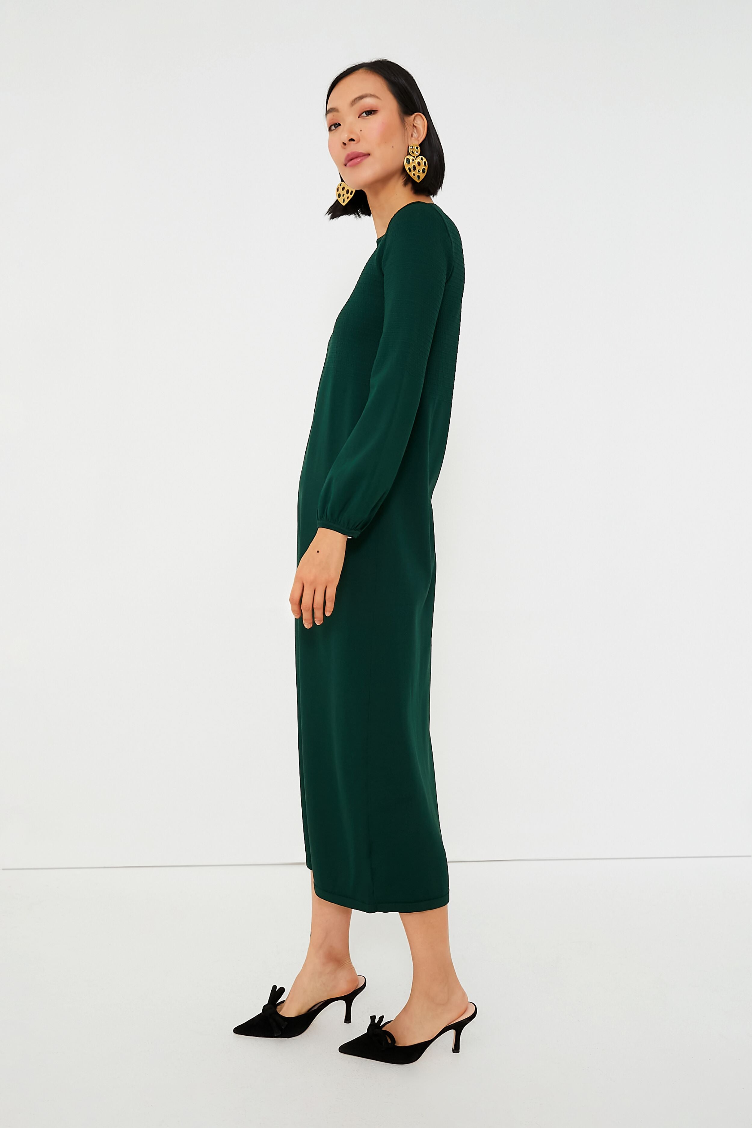 As cozy as a sweater and as chic as a dress. the Hunter Green Lennox will take you from clocking hours at the office to cocktail parties with a quick switch of accessories. Crafted from a double knit fabric that's ultra slimming and even more comfortable. this minimalistic maxi is ready to be dressed up or down with its blouson sleeves and textured bodice details. Pair it with flats and gold hoops for effortless styling and a casual-cool vibe. or dress it up with heels and a clutch.
