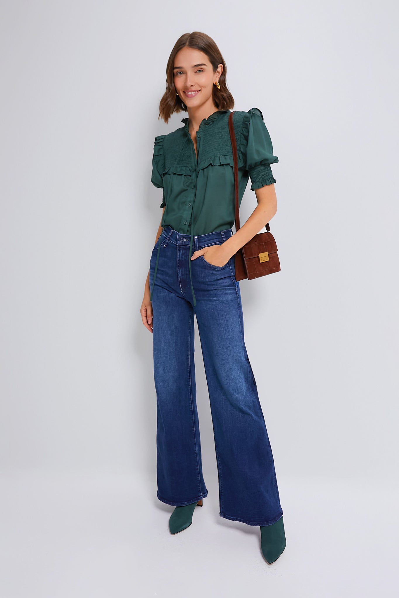 This feminine blouse boasts a ruched front. ties at the neck. and short puff sleeves. The versatility of this top is our favorite part though — it's a fun and flirty option when paired with a mini skirt and heels. a classic look with denim and a sleek bag. or an office-appropriate moment when styled with trousers and loafers.