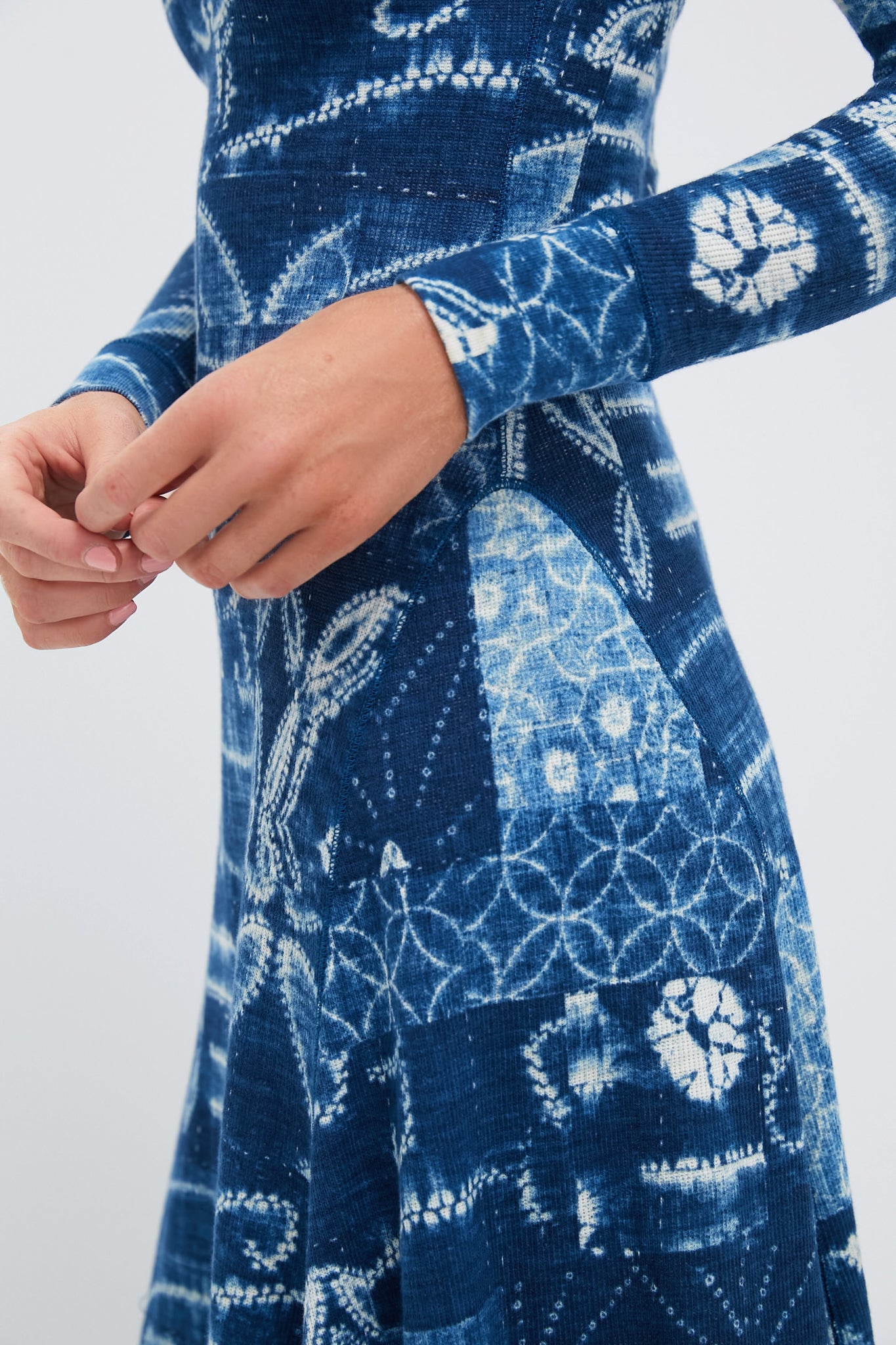 Make a statement with the Indigo Shibori Patchwork Rowie Dress. featuring a unique blend of dyed patterns and a flattering flowy silhouette. making it perfect for daytime adventures or evenings out. Pair with sandals for a casual look or ankle boots and a wide-brim hat to channel bohemian sophistication.