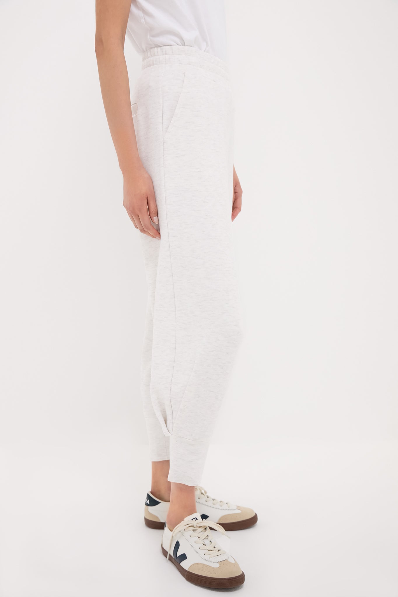 Embrace the perfect blend of style and comfort with this Ivory Marl Relaxed Pant 25. The relaxed fit offers ample room for movement and the elastic waistband provides a secure fit while allowing for easy on-and-off. Whether you're lounging at home. running errands. or meeting friends for coffee. these pants are your go-to choice. Pair them with a soft turtleneck for a polished look. or throw on your favorite tee for a laid-back style.