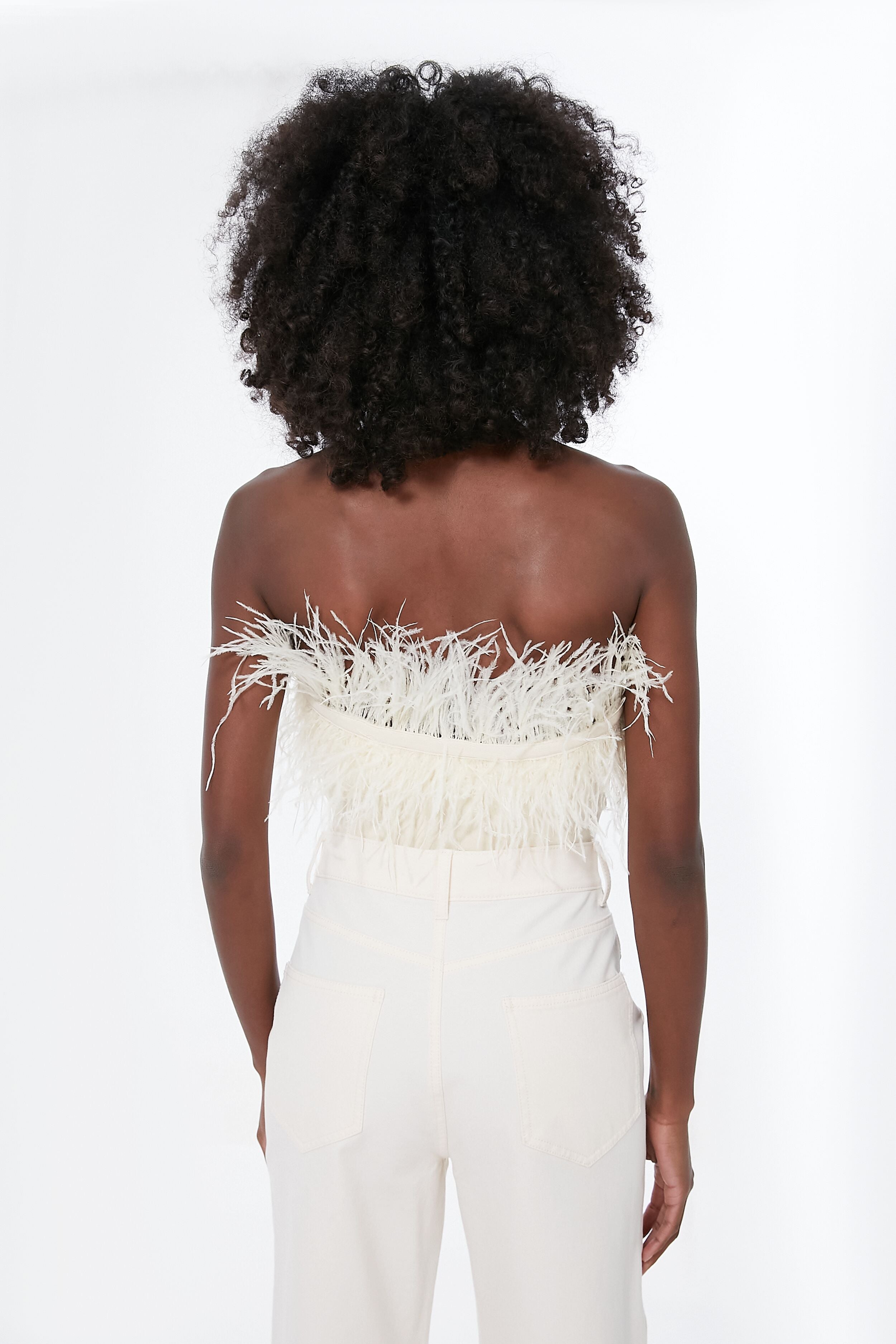 Bored of your current wardrobe? Enter the Ivory Nellie Top to freshen things up and bring some excitement! A compact knit tube top decorated with delicate ostrich feathers. this style is unmatched in its fun and flirtiness. perfect for wearing to holiday parties and other celebrations. Style with winter whites for a monochromatic look. or up the contrast with black or a bright color to make it pop -- just don't forget to accessorize for a complete ensemble.