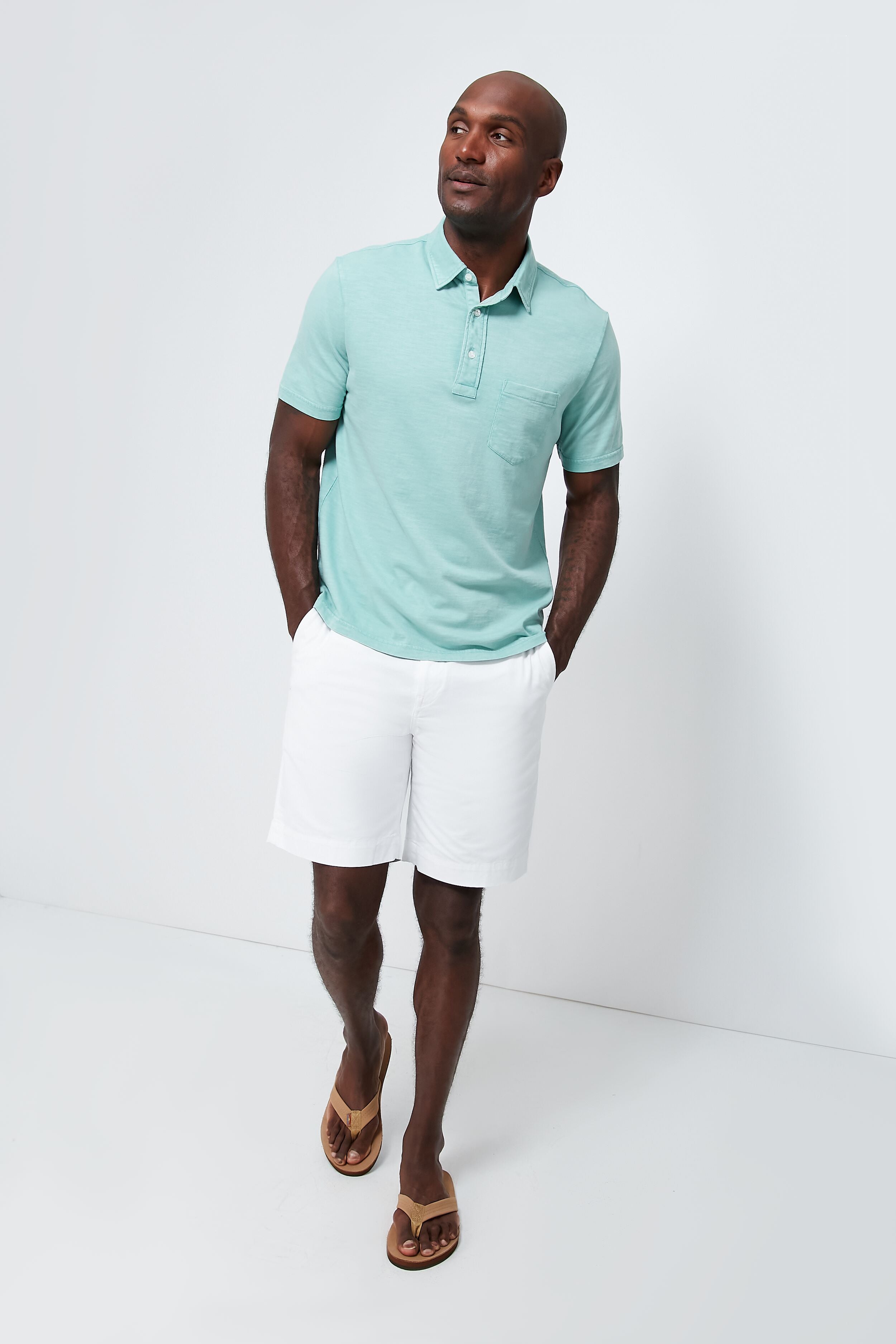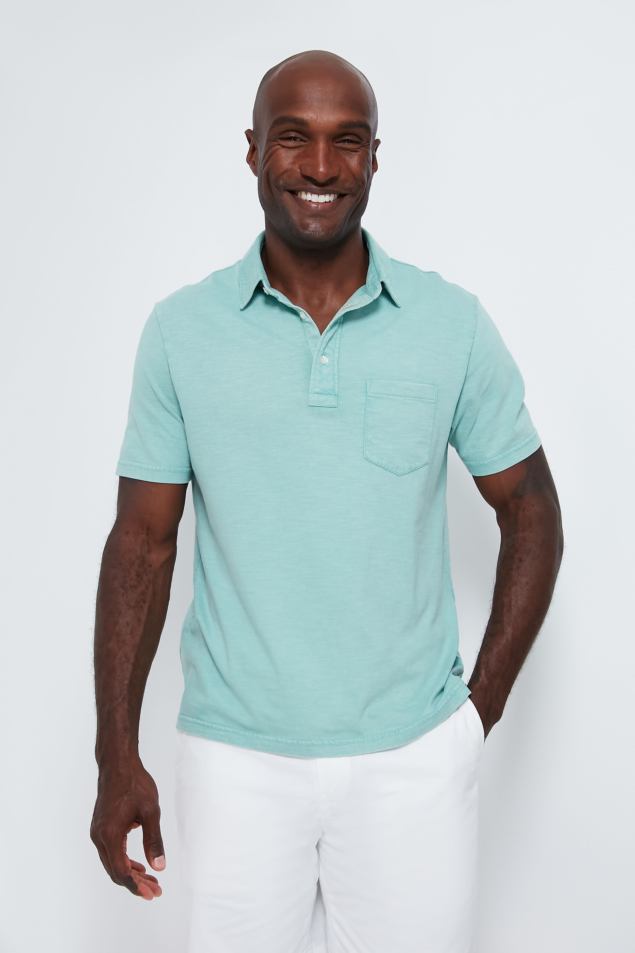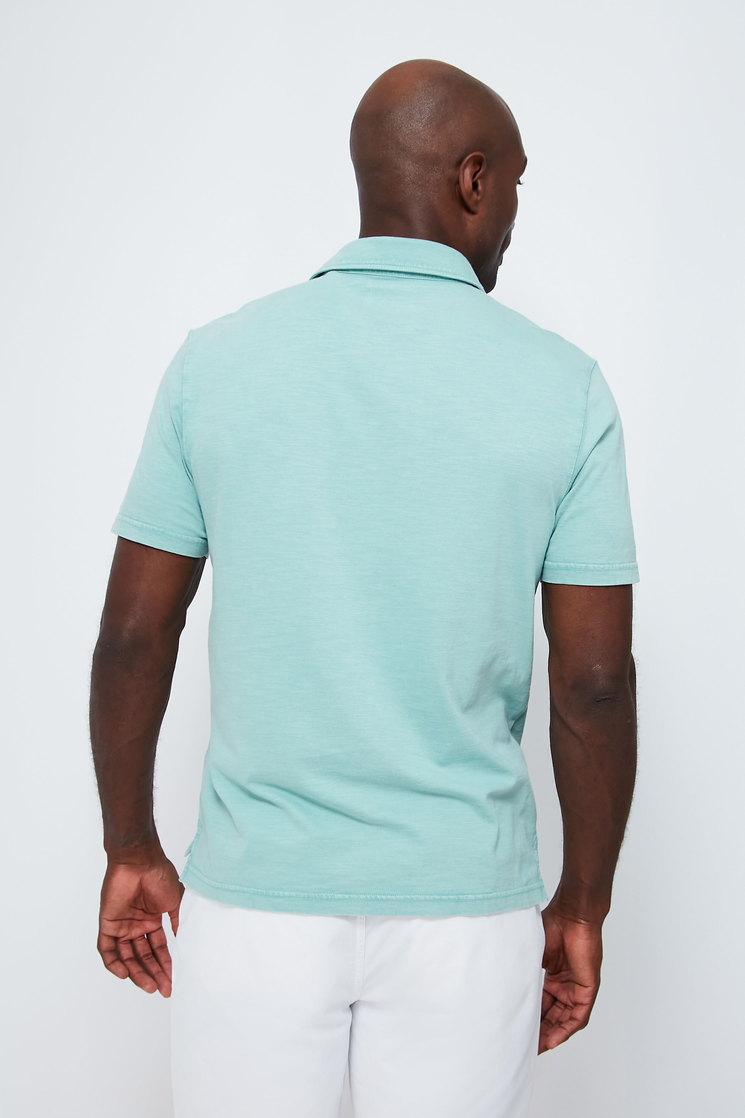 Fresh and new in a faded turquoise hue. we are loving the Lagoon Teal Sunwashed Tee Shirt Polo. This casual top is crafted from organic cotton that has been garment washed for a perfectly faded. lived-in look and feel. Cut with a relaxed-but-tailored silhouette. it's a timeless wear-with-everything style that'll take you from the links to backyard get-togethers with ease.