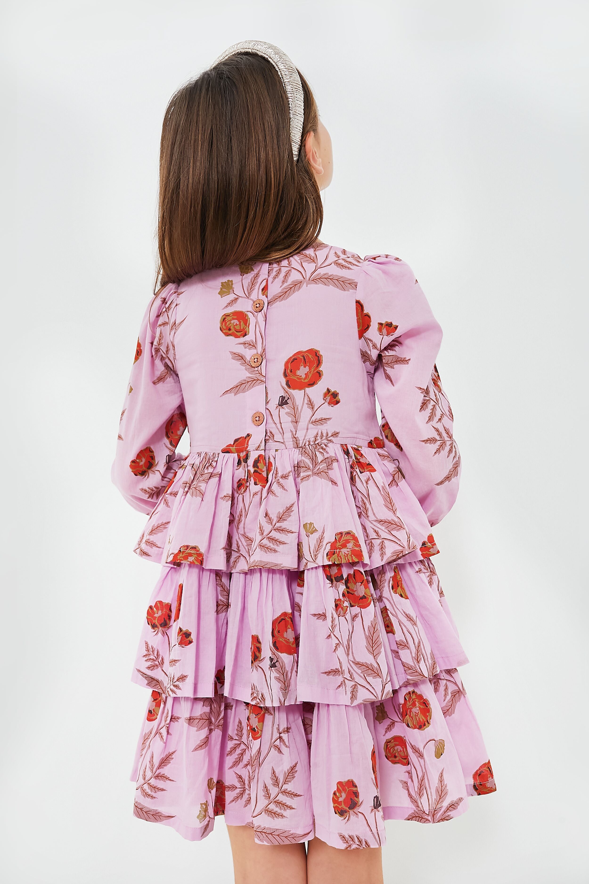 Made in a vibrant hue and adorned with lovely florals. there's nothing sweeter than the Lavender Poppy Fleur Dress. Crafted from high-quality cotton. this mini will keep your kiddo feeling their best from family photos to playdates and everywhere in between. Complete with long sleeves and a layered ruffle skirt. this chic style is sure to become a favorite.
