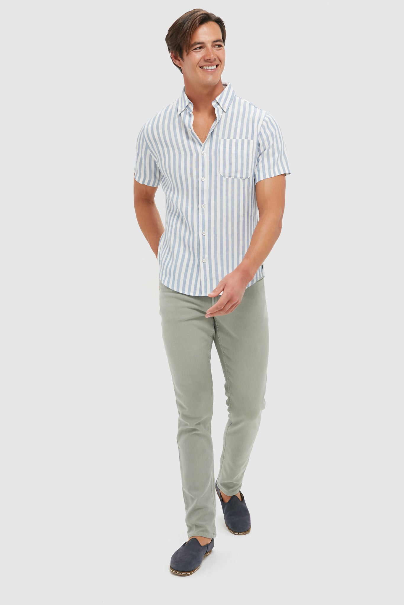 The 100% linen Light Blue Stripe Costa Shirt has been garment washed for that perfectly lived-in feel from day one. From lazy days on the beach to dinner al fresco. this shirt will keep you feeling and looking cool as a cucumber.
