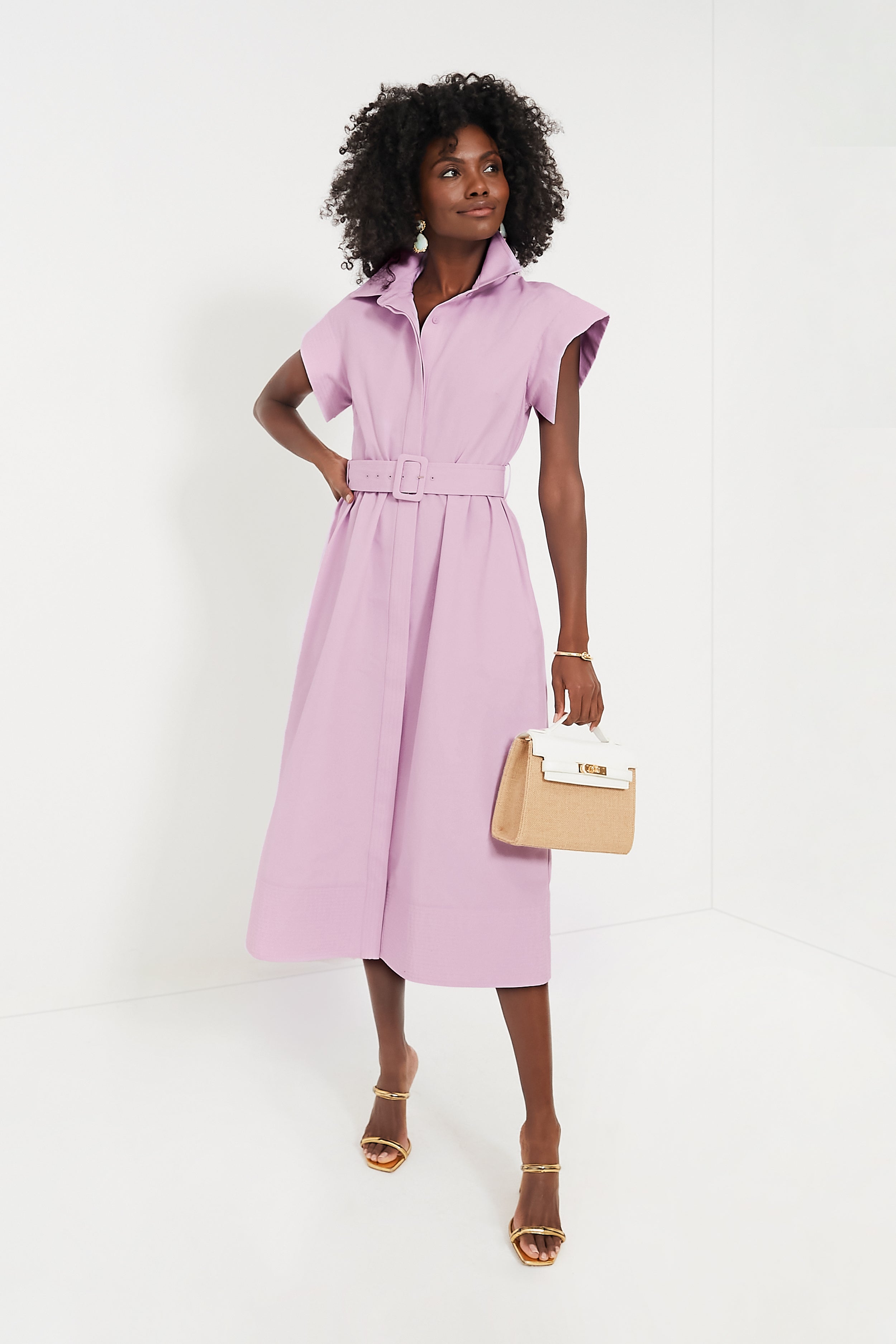 Elegant in its simplicity. the structured and ultra-ladylike Lilac Chloe Dress is done in a textured cotton-blend fabric that is sure to turn heads for its design details. The moire pattern throughout and trapunto stitching on the sleeves. placket. and hemline complete this midi moment. making it feel extra special with minimal effort. Pair with heels or flats. sunnies or statement earrings. for day or night. and rest assured that you look fabulous!