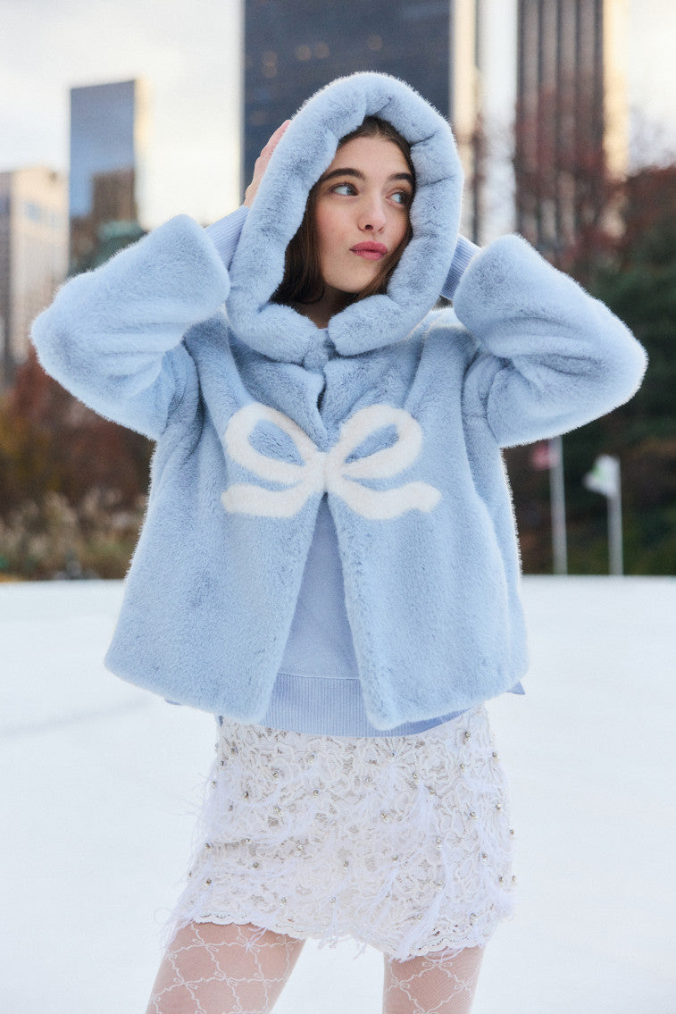 Keep it cool in the Go Chicly x MAX&MOI Maloa Jacket. Using MAX&MOI's Furever faux fur. this layer is as soft as it is chic with a relaxed fit. The piece features our signature Go Chicly bow on the center front for a playful touch. From the mountains to the city. this jacket is our must-have for the season. Pair with the Go Chicly x MAX&MOI Robin Jogger for a full set.