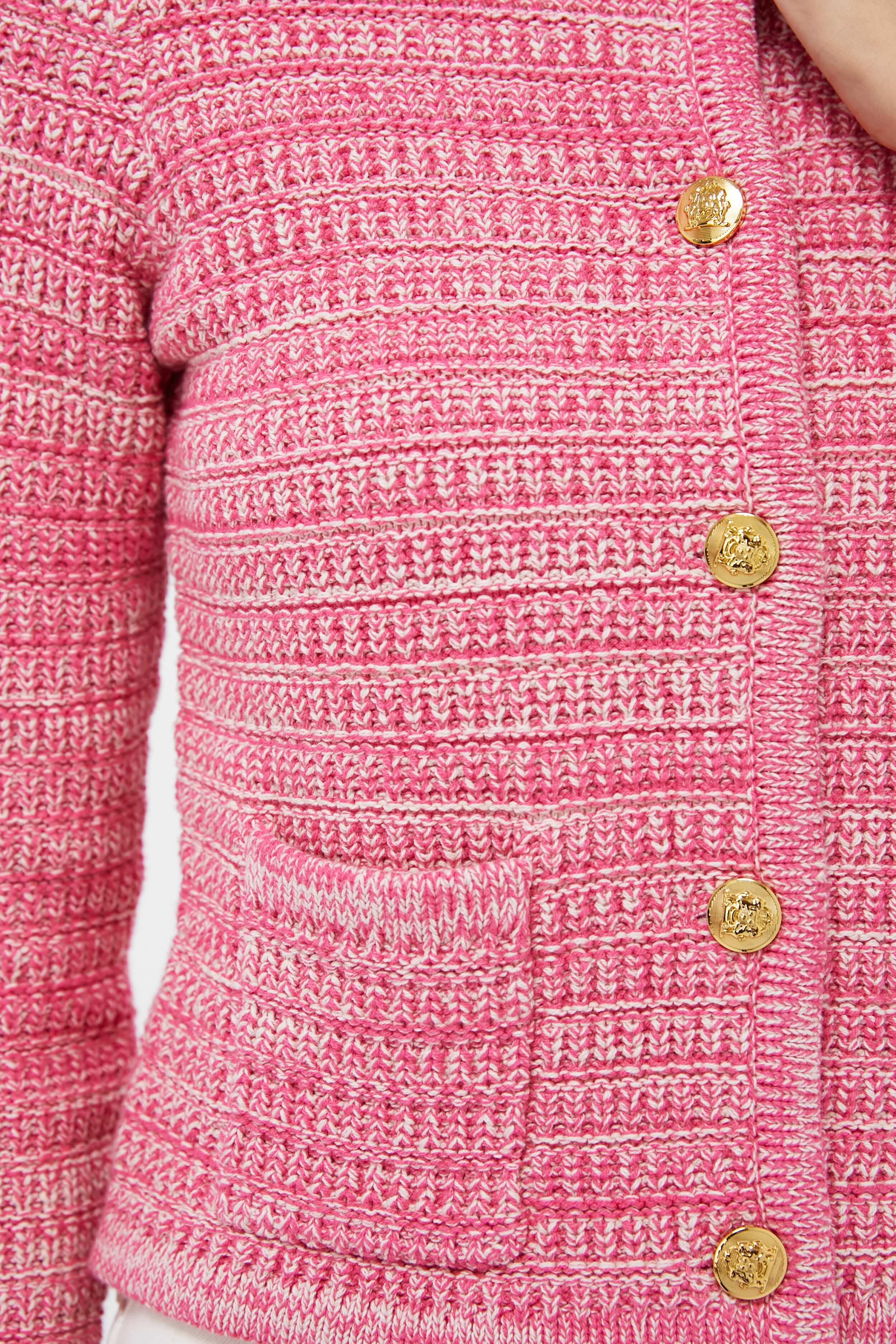 The Marled Pink Maybourne Cardiganis a closet must-have. The knitted body is comfortable and versatile. while the gold buttons and structured silhouette elevate it to the next level. Perfect for work meetings. coffee dates. brunches. and beyond. this will be your new favorite style. Pair with denim and flats or a skirt and heels.