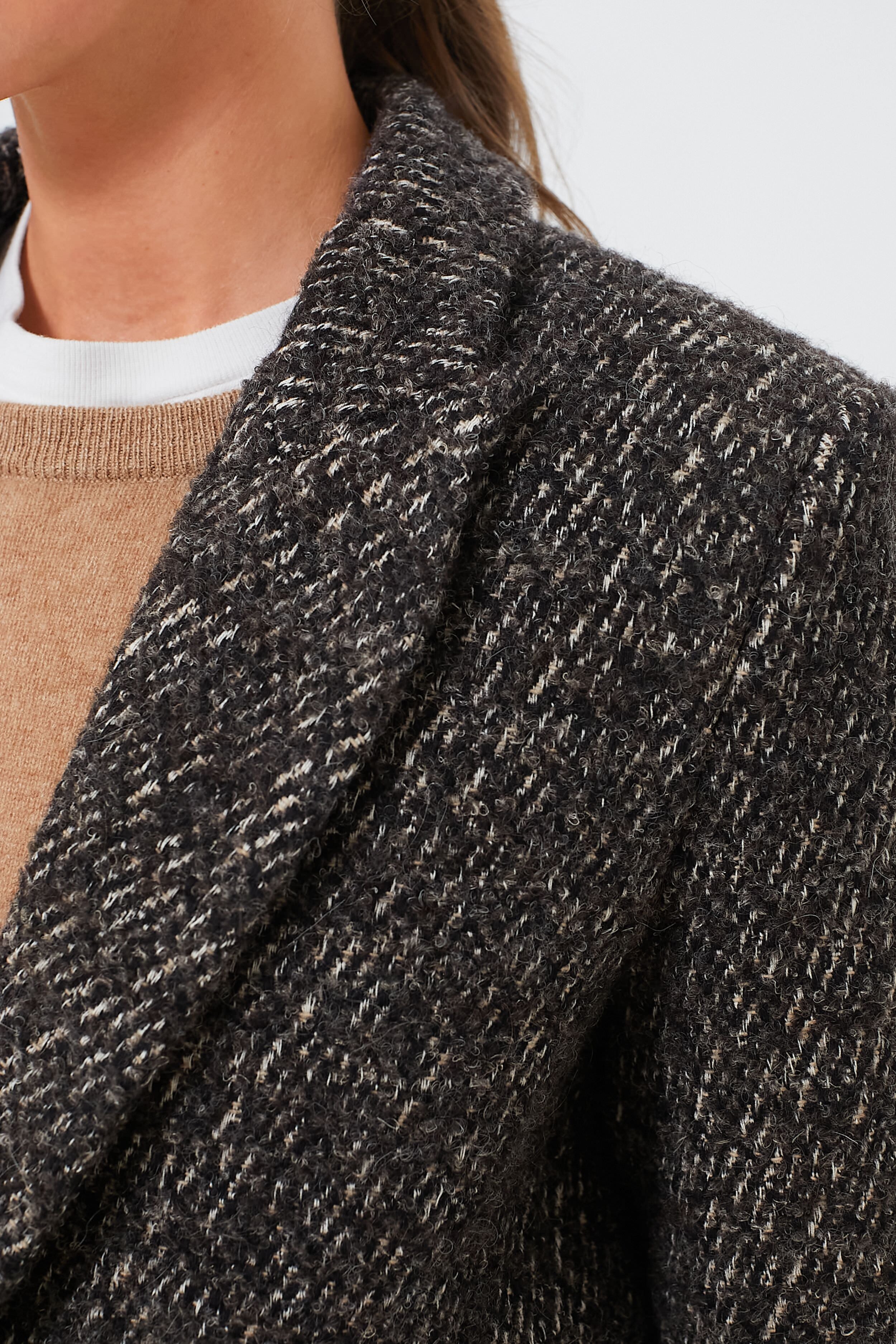 This LOST blazer is taken straight from men's collections. but redesigned to perfectly fit the figures of women. It is made with long sleeves. a straight cut. and a front button to style opened or closed. We love its roomy patch pockets. perfect for storing everyday belongings. Wear this jacket open with some jeans and a fitted sweater for an adorable masculine feminine style!