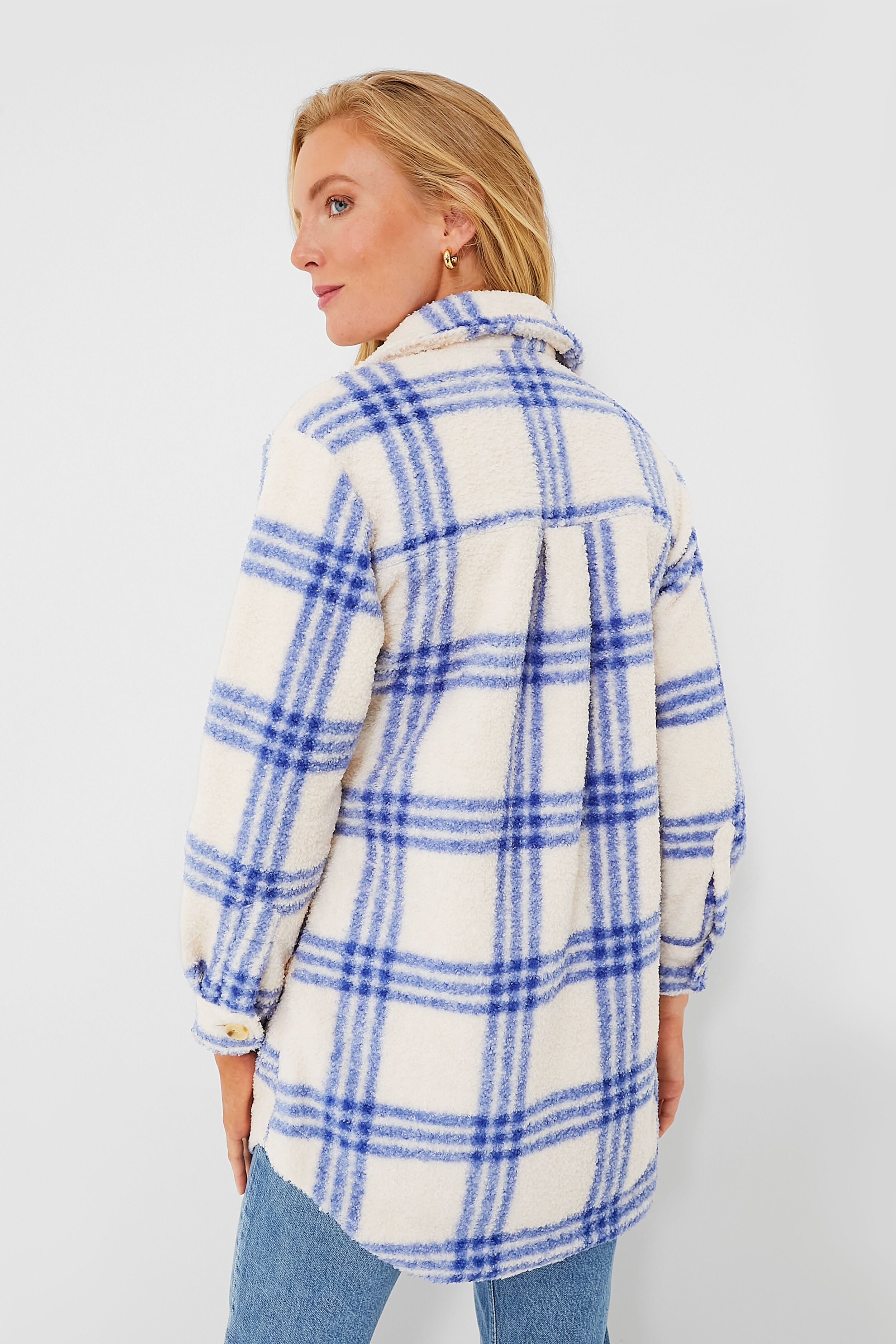 Designed as a from-his-closet look. the insanely cozy Mazarine Blue Bailey Long Shirt Jacket feels like a cozy night-in but can be styled up for a night-out. Made from soft and fluffy sherpa fabric. this classic-cool look is perfect for layering or on its own. Whether it's time to watch a holiday flick or meet up with friends at your favorite spot. this will be a staple for you. Pair it with denim. boots. tees. and boom- your new go-to outfit!