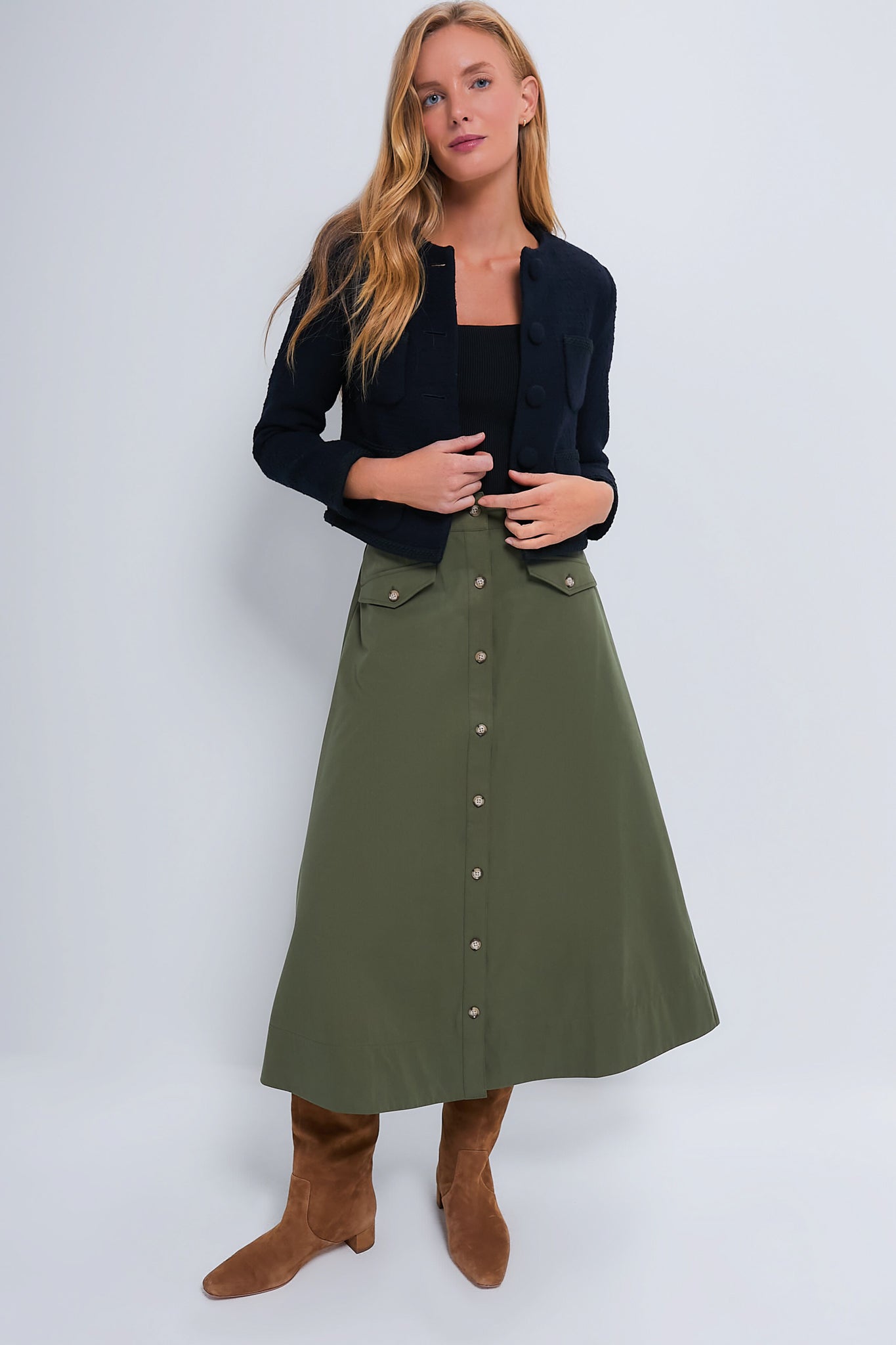 Crafted from a luxe tweed fabric. this Midnight Jacket features front pockets and coordinating buttons providing a clean and sophisticated look. We are styling this with loafers and denim for an office look. or with skirt and heels for a date night ensemble.