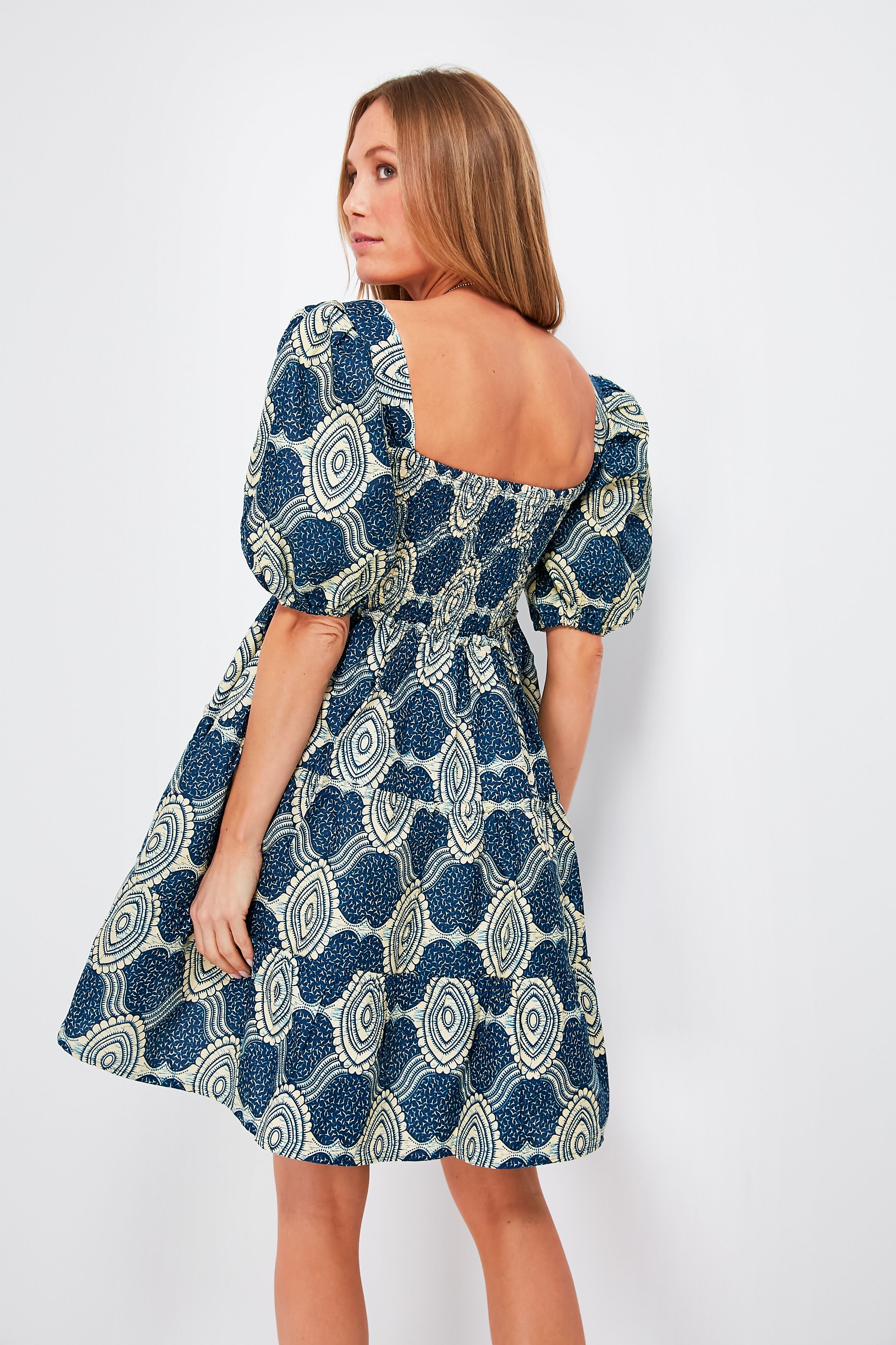 Printed with the most breathtaking pattern. the Multi Sisi Dress is a floaty and feminine silhouette. Ultra-wearable with its square neckline and smocked bodice. the real fun comes from the volume play — can we take a moment to appreciate those puff sleeves and full. flared skirt? A gorgeous way to add some color and fun to your wardrobe. this cotton mini can be easily dressed up with heels and a clutch or down with sandals and sunglasses.