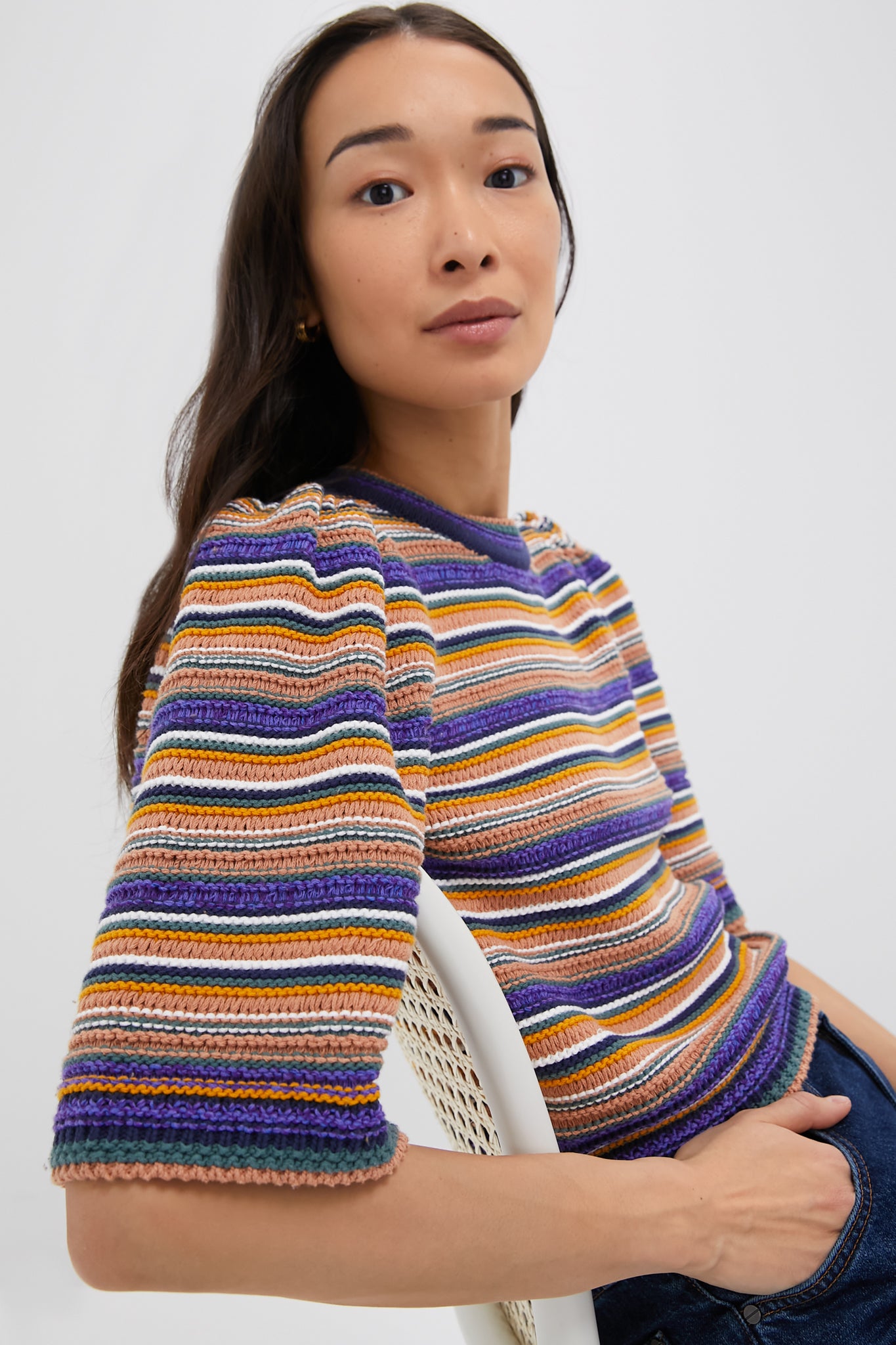 The Multicolor Farfaela Jumper is the perfect transitional sweater for your wardrobe. With a boxy silhouette. gathered shoulder. and oversized short sleeve. this top pairs perfectly with denim. skirt. or shorts! Just add flats and a crossbody bag for an elevated. everyday look!