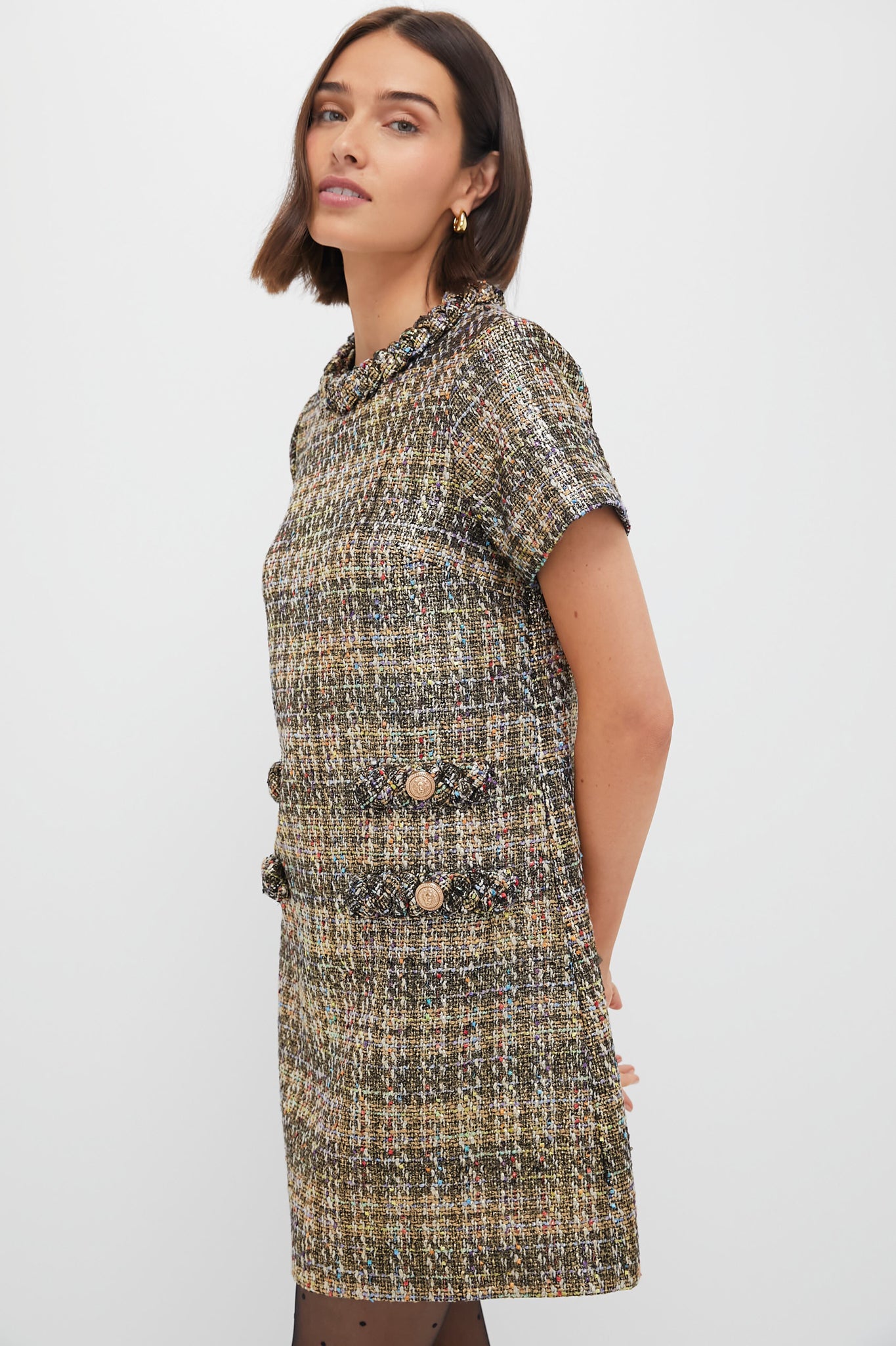 Named after the great style icon. Jackie O. the Jackie Dress is designed to make you feel confident and chic. The beauty is in the details—from the textured tweed fabric to the luxe braided trim and vintage-inspired buttons. The shift silhouette feels tailored but wears effortlessly. making it a closet icon. For everything from holiday parties to client meetings. everyone needs a Jackie in her life.