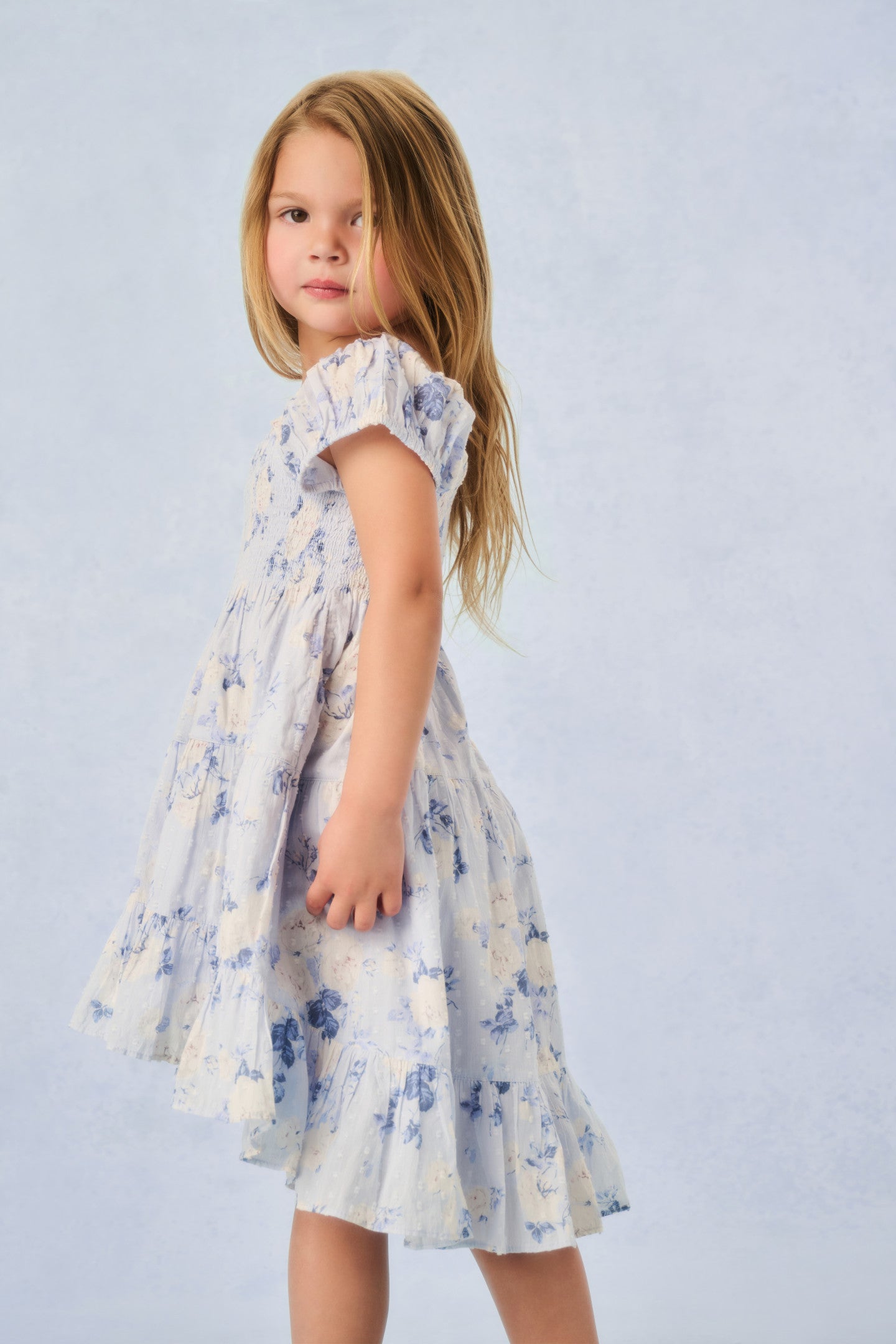 Girls Muriella Fragrance Print Dress - WHISPER BLUE