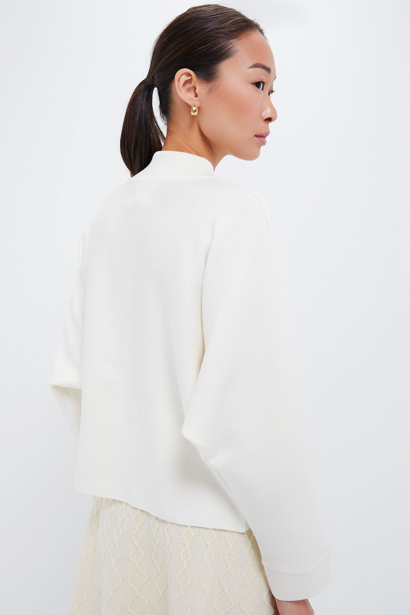 The Baci Sweater. in a high-quality pure wool. is crafted to last as an essential. luxurious basic in your wardrobe. Its loose. minimal cut and wide sleeves offer countless opportunities for styling. We recommend pairing it with the Natural Brioche Skirt. tall black leather boots. and chunky gold jewelry for the ultimate winter white look.