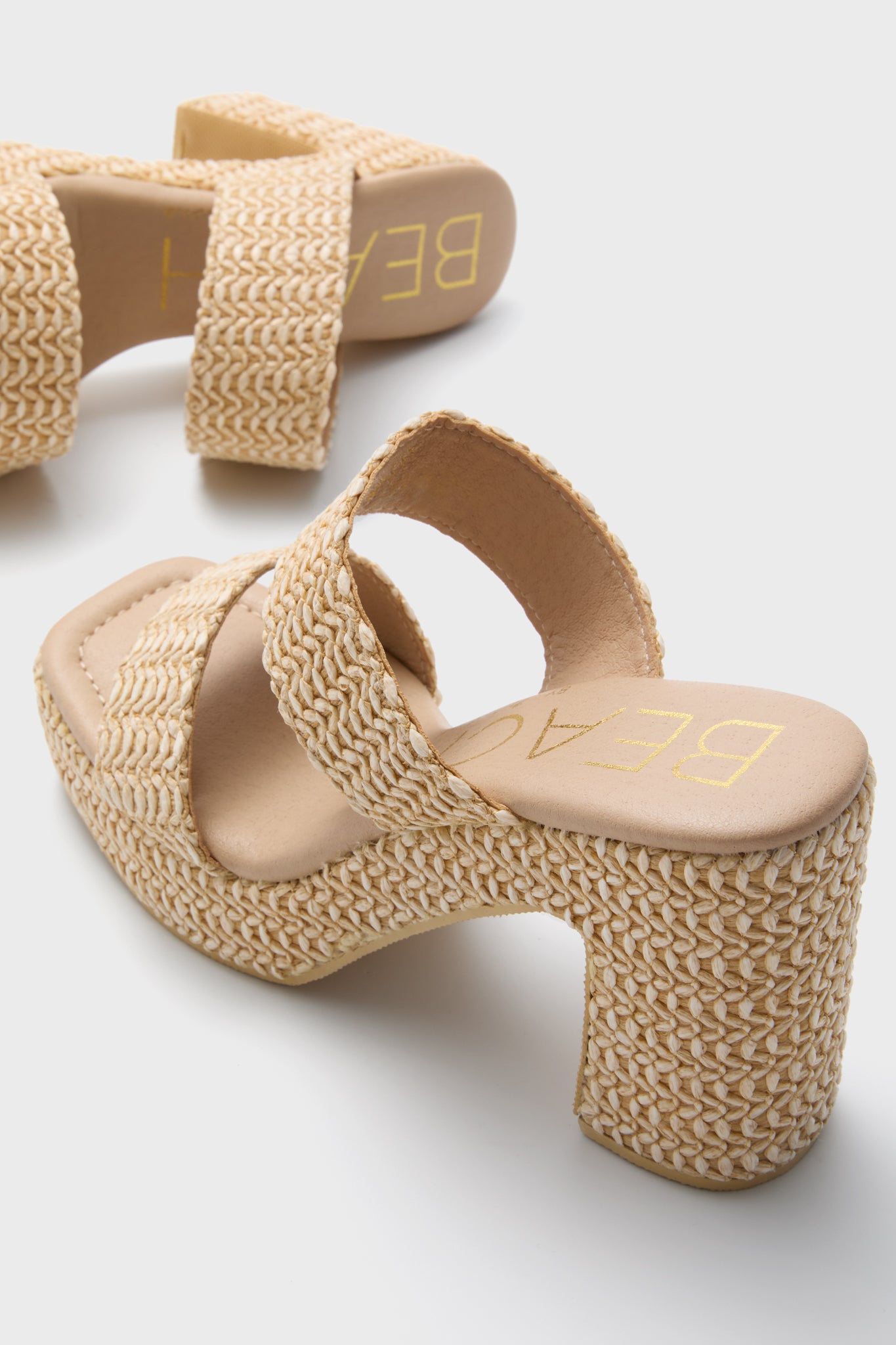 Platform silhouette. block heels. braided raffia. the Natural Gem Heels are ready for vacation and seaside dinners! Instantly elevate any warm-weather look with these sandals. pair with a breezy sundress and beachy accessories for a fun and sassy vacation look.
