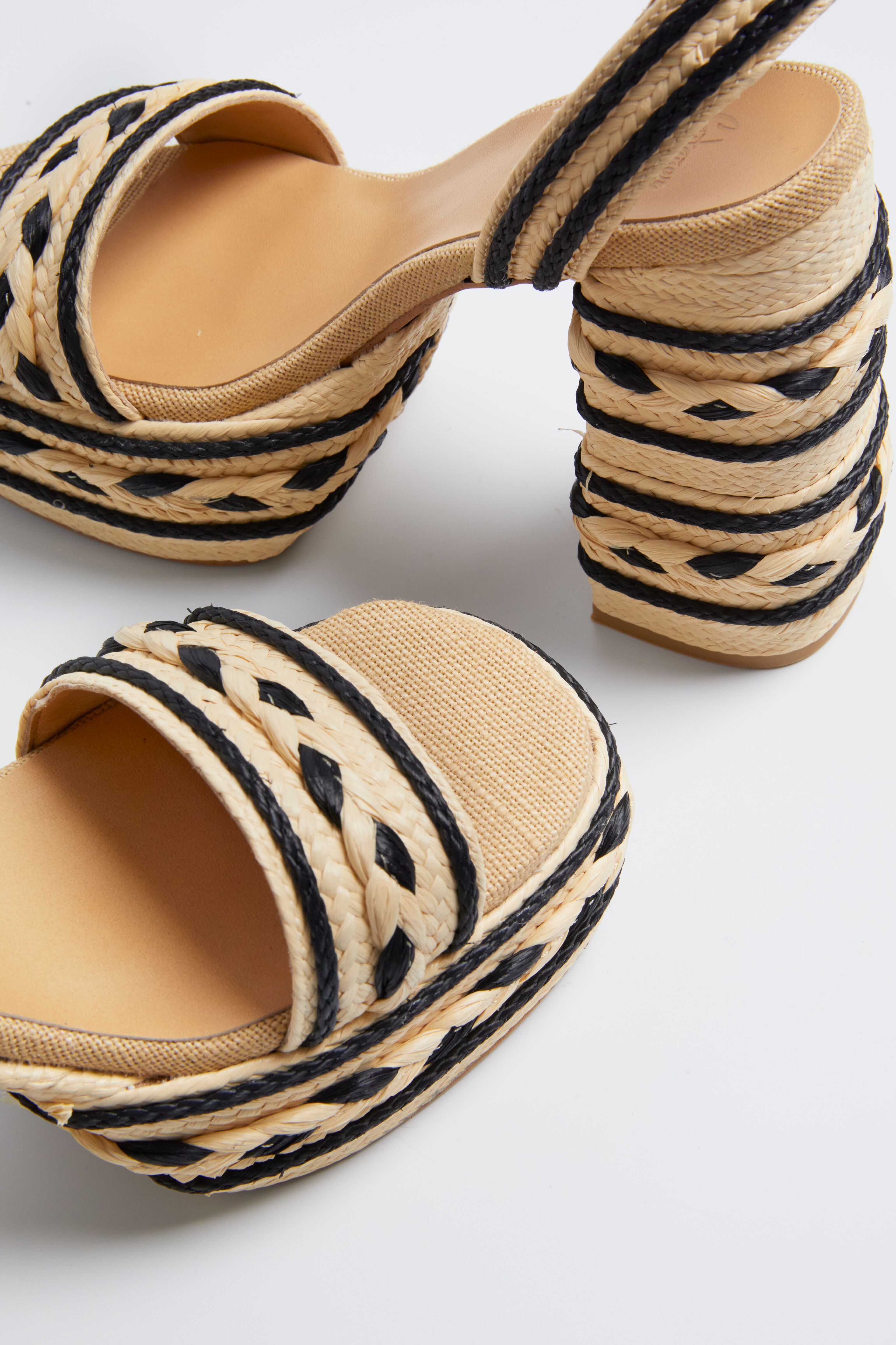Elevate your warm-weather wardrobe with the Natural Raffia Flas Heels. These eye-catching beauties boast a braided upper that consists of black and tan tones. making it easy to match everything in your closet. The platform heel adds a touch of drama while still being comfortable for day-long wear. Pair with a simple maxi dress or with wide leg pants and a blouse!