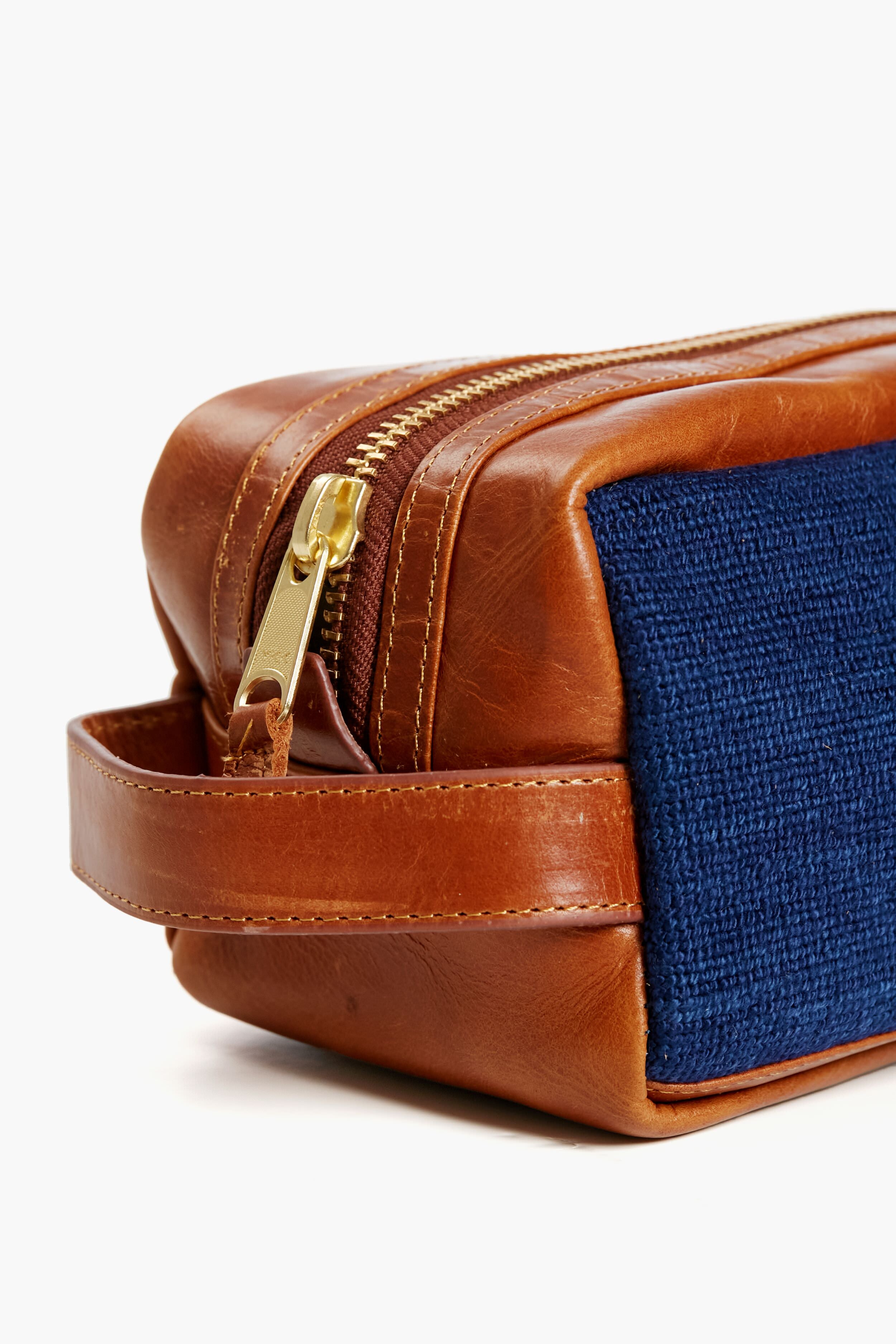 The Navy Anchor Needlepoint Toiletry Bag was designed with function in mind. The interior boasts a double water repellent interior to keep messes to a minimum and is finished with a top zip and side handle for easy carry and access. Finished with full grain Italian leather and hand stitched needlepoint. this makes the perfect gift for the guy on the go or someone who needs a bit of organization in their life.