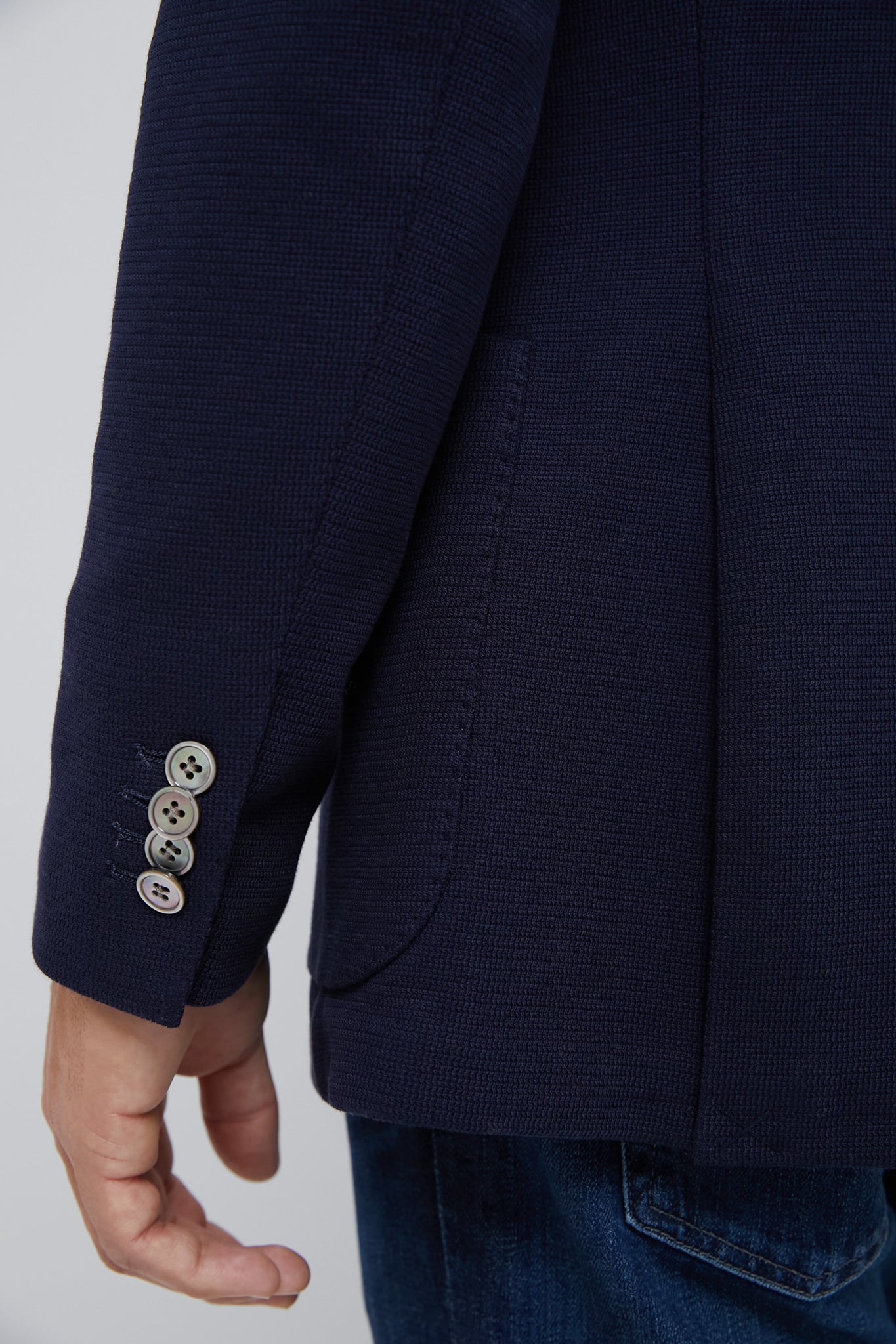 This blazer was made to travel—literally. Wrinkle resistant and ready to toss in your briefcase or to throw on before a quick flight. this knit jacket is made of sweater-soft cotton and designed to hold its shape. You can think of it as the cool-guy blazer for business trips and days at the office. Style with a pair of chinos and your favorite loafer for a smart yet casual look.