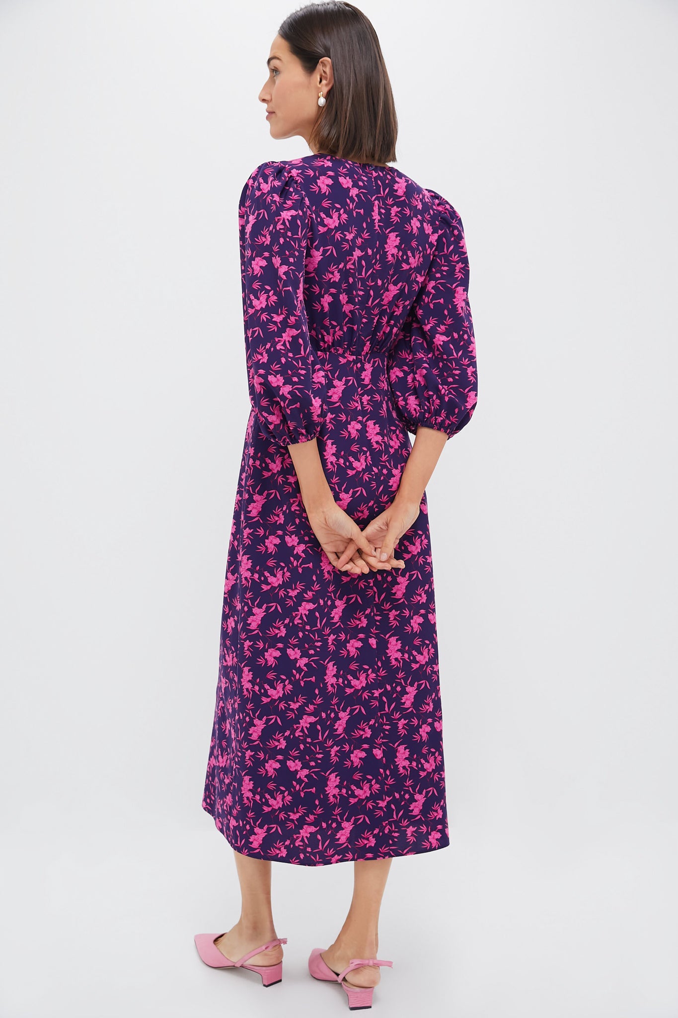 The Navy & Fuchsia Floral Norma Maxi Dress boasts flattering details such as the front keyhole. three-quarter length balloon sleeves. and fitted waist seam. We are styling it for everything from formal dinner parties. to date nights. to work events with statement earrings and sleek heels!