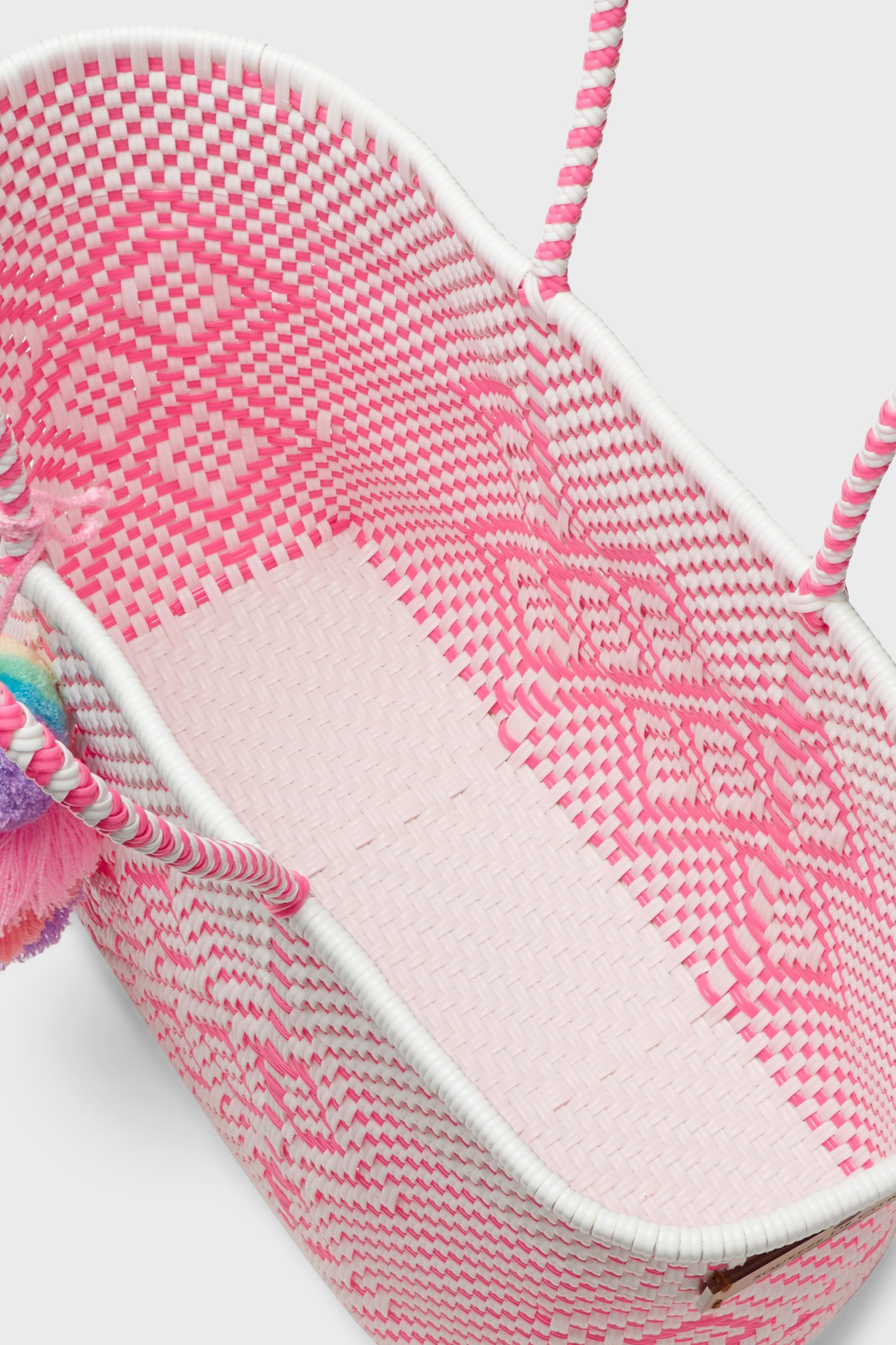 The Neon Pink Cocoles Medium Citron Bag is the definition of true craftsmanship. These totes are ethically made and gracefully sourced by Mexican artisans using Squeeze De Citron's in house designs. It takes seven to ten days to hand-weave each style from 100% recycled plastic. Not only can you be confident in where your bag comes from. but the feminine and fun pattern and colorful pom are sure to add a joyful touch to your day to day whether you're headed to the beach or running errands!